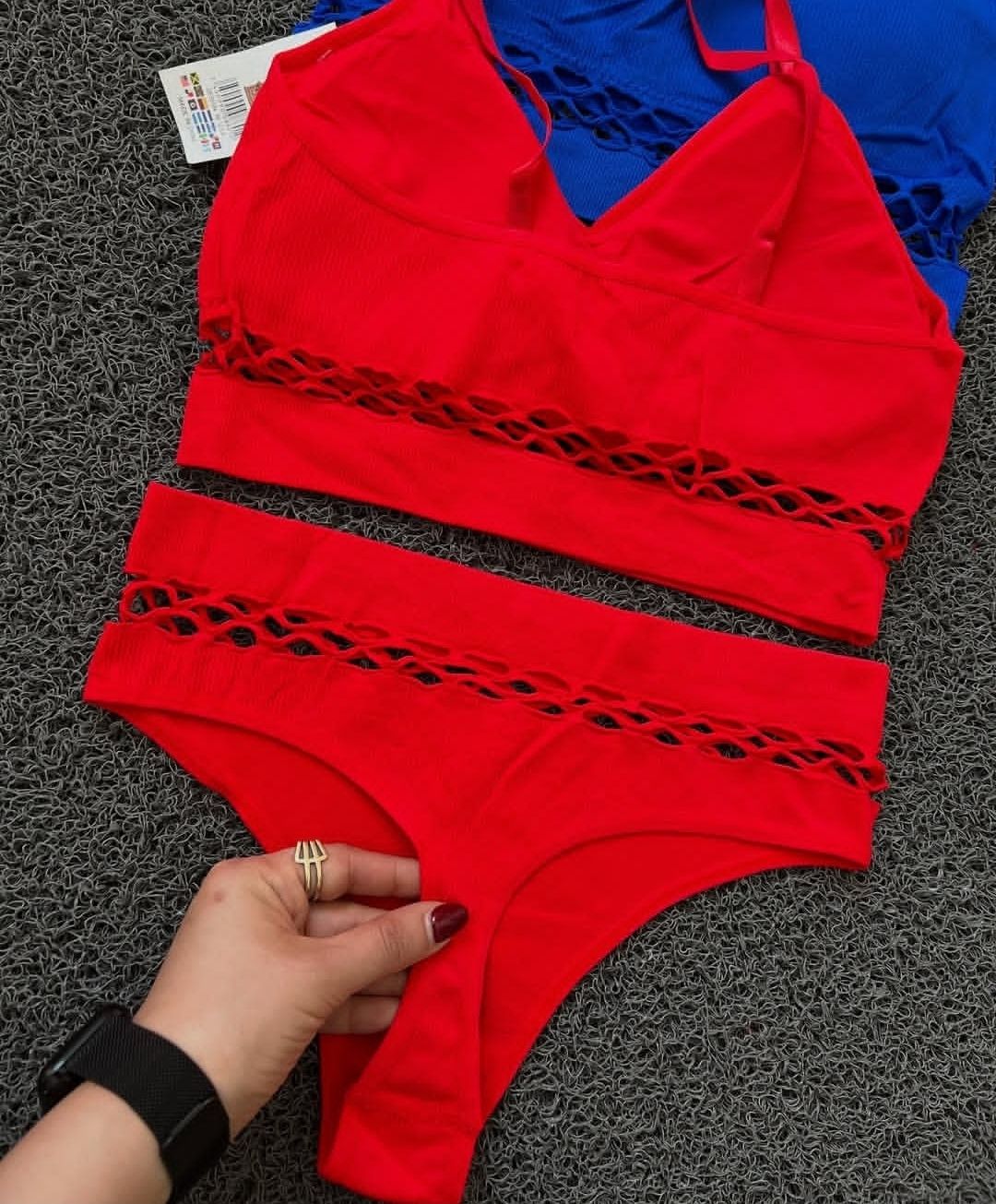 ست شورت و سوتین اسفنجی با بند گیس باف