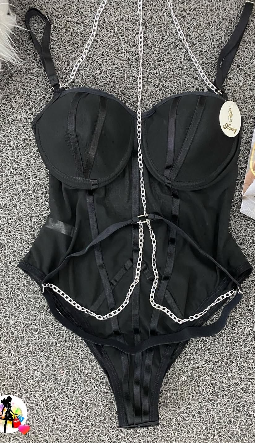 ست شورت و سوتین دیسکو هارنس دار بند زنجیری و نگین دار