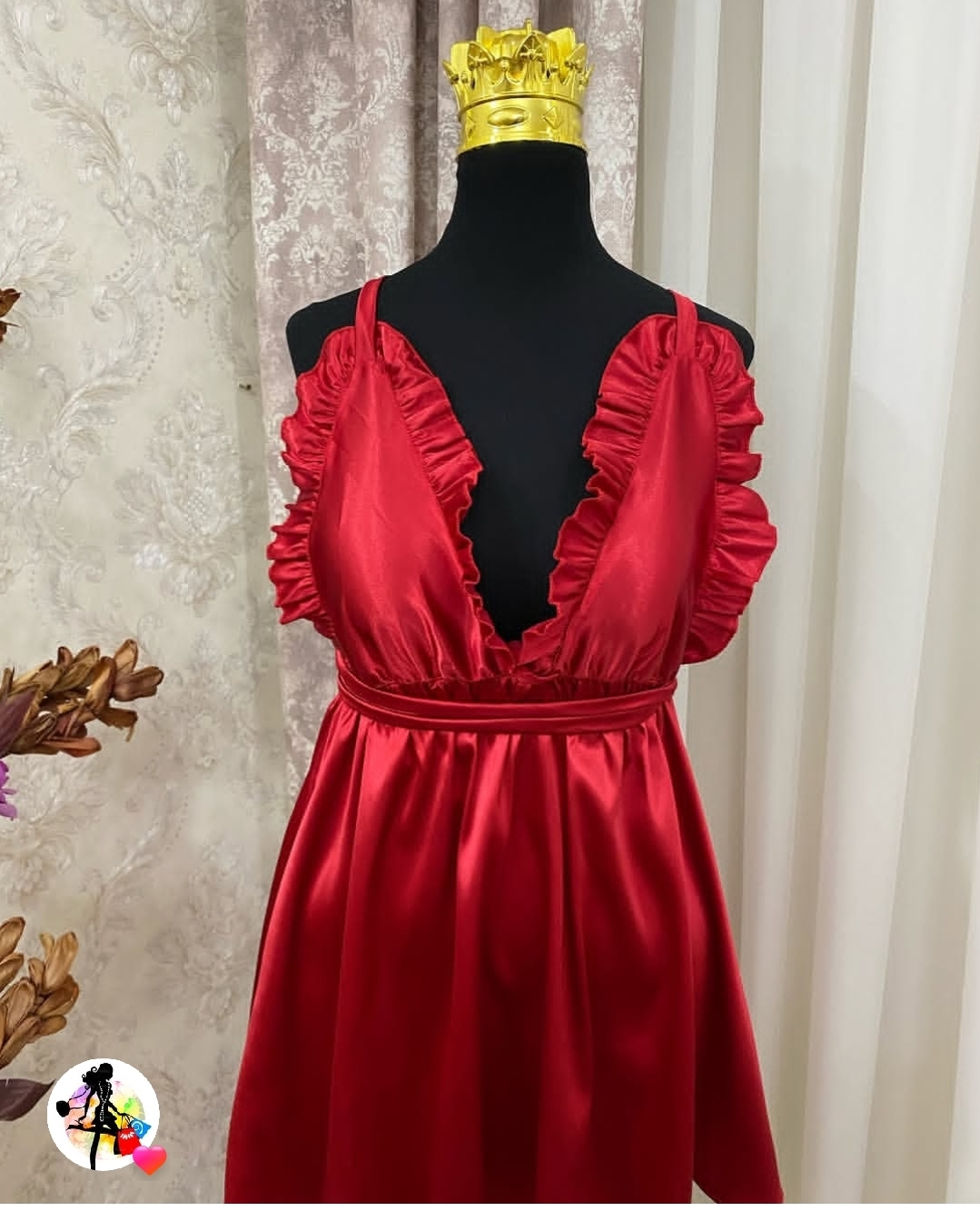 پیراهن ماکسی زنانه کبریتی با بند زنجیری طلایی