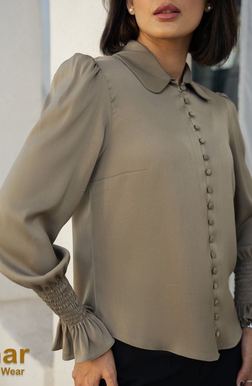 شومیز تک دکمه آستین پفی زنانه