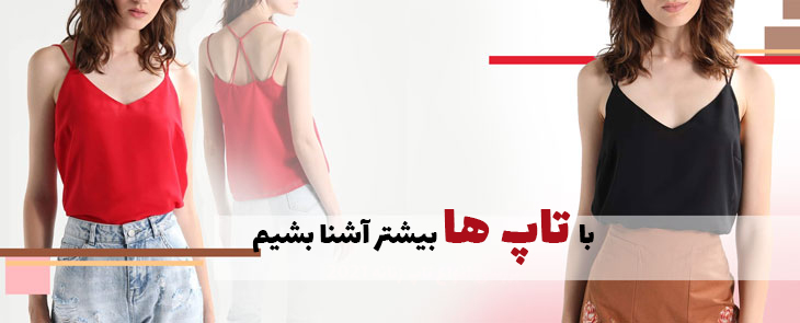 تاپ بندی لباس های مناسبی برای خانم ها هستند به خصوص در فصل بهار و تابستان وقتی که هوا رو به گرما میرود این تاپ ها بسیار پرکاربردند. تاپ ها معمولا کوتاه هستند که بالا تنه را می پوشاند و به همین دلیل در زبان انگلیسی می گویند top یعنی بالا. جالب است بدانید بیش از 45 نوع تاپ برخی با آستین و برخی بدون آستین هستند.