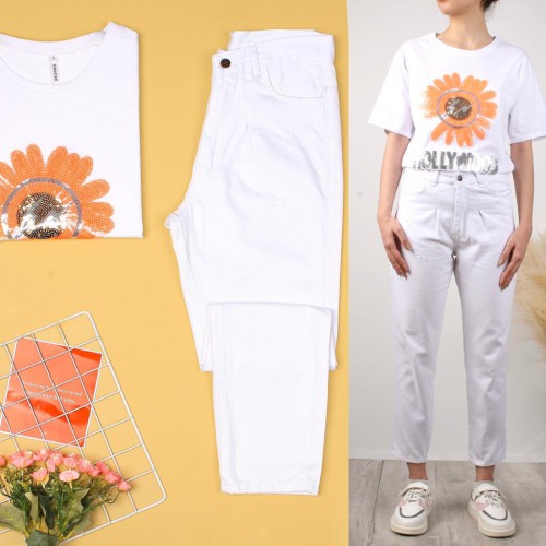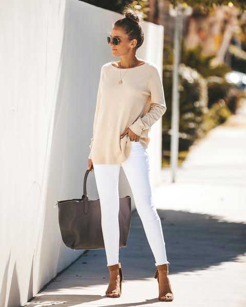 نحوه ست کردن شلوار جین سفید با لباس