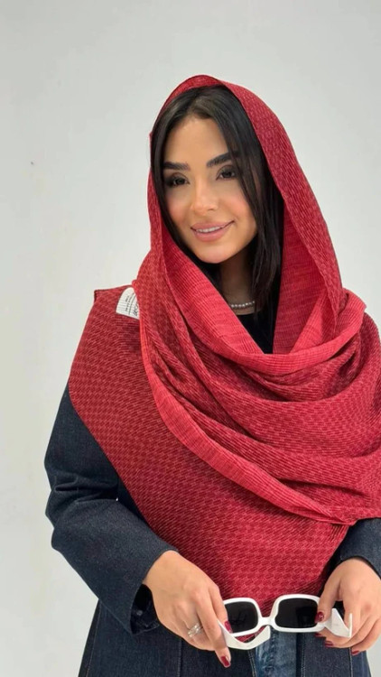 شال نخی پلیسه ریز زرشکی