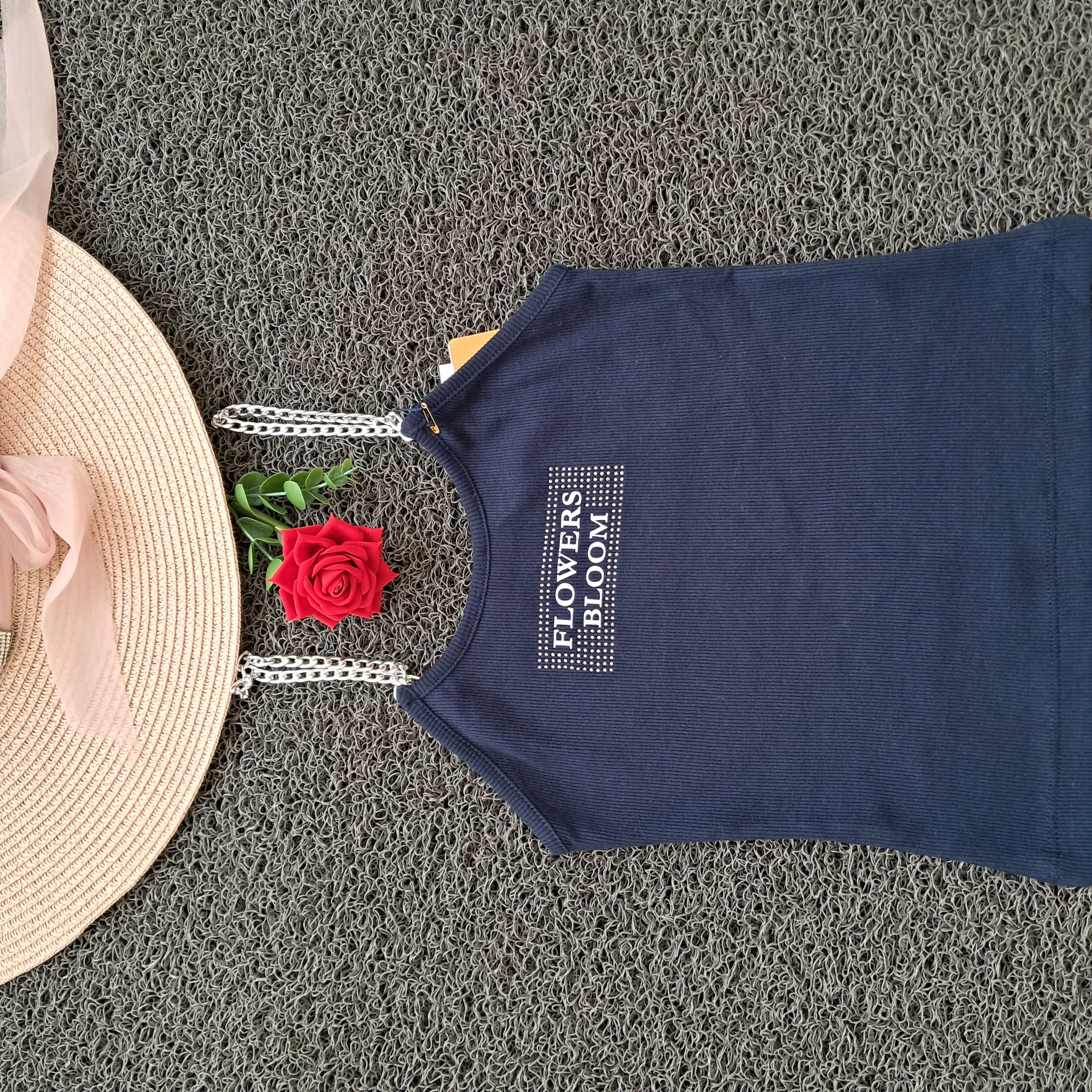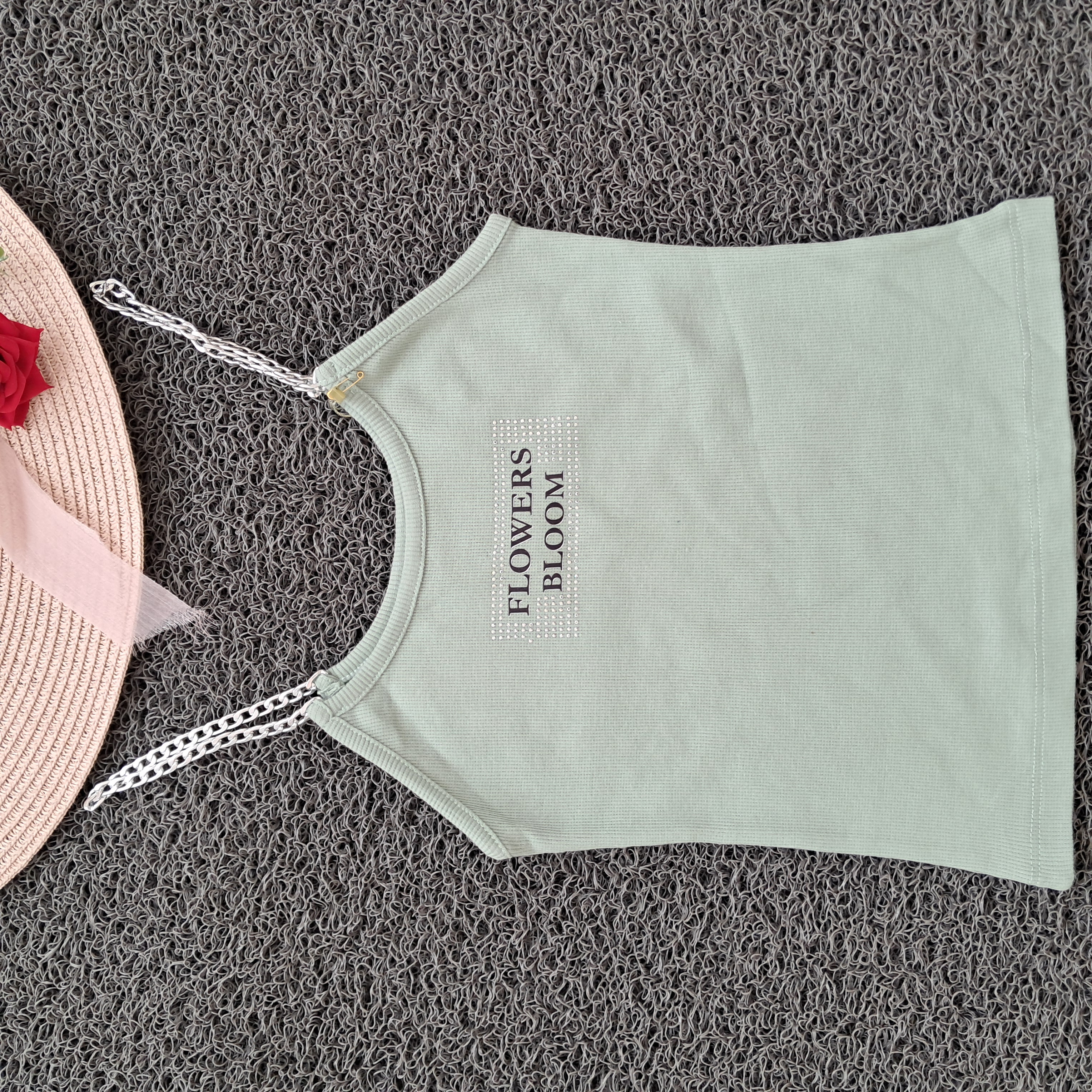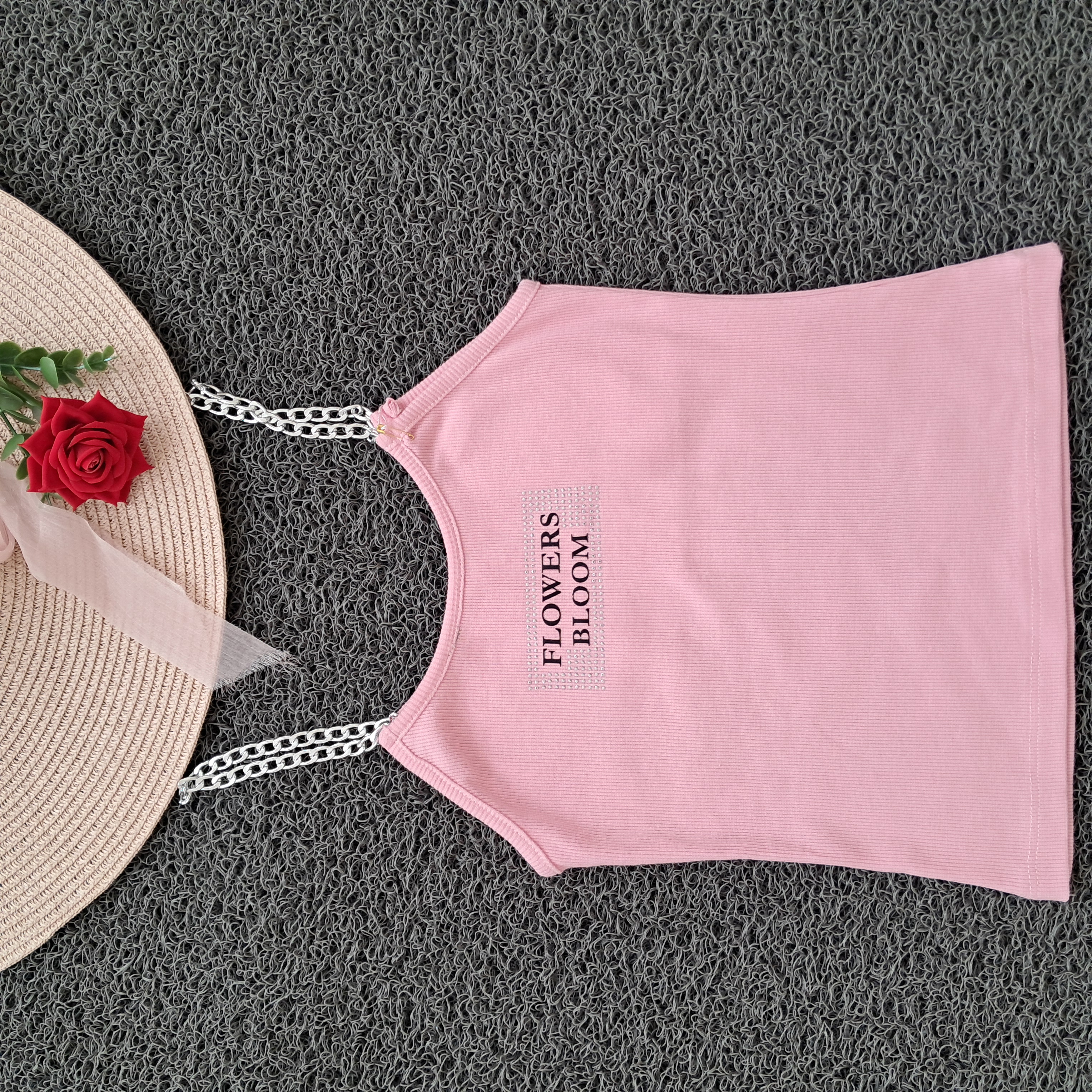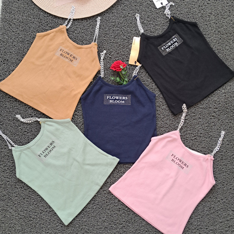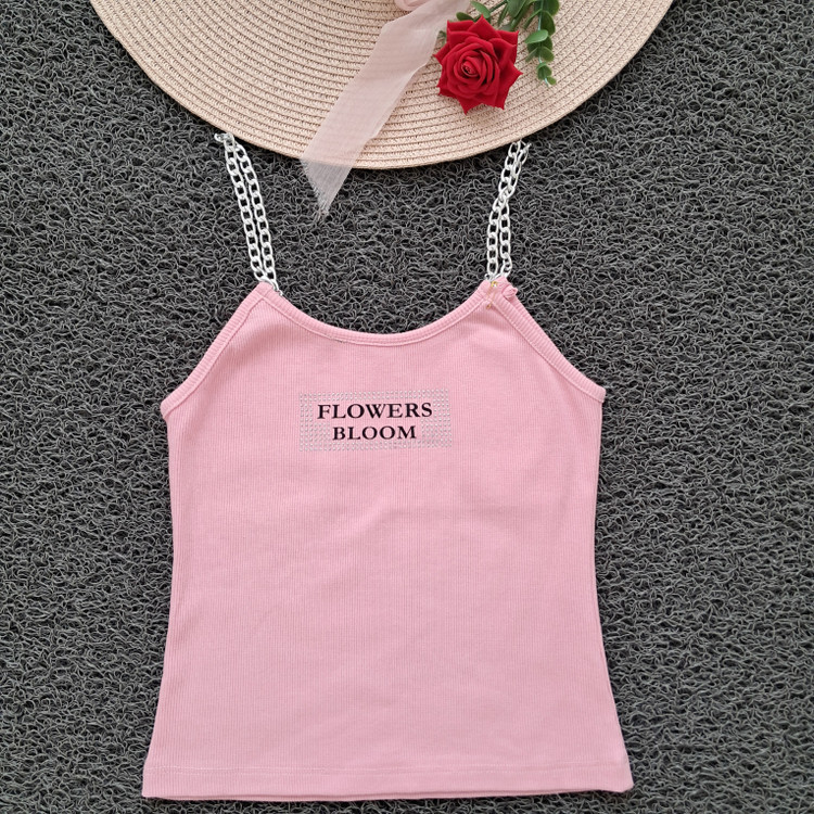 تاپ دخترانه بند زنجیری نگین کوب کبریتی