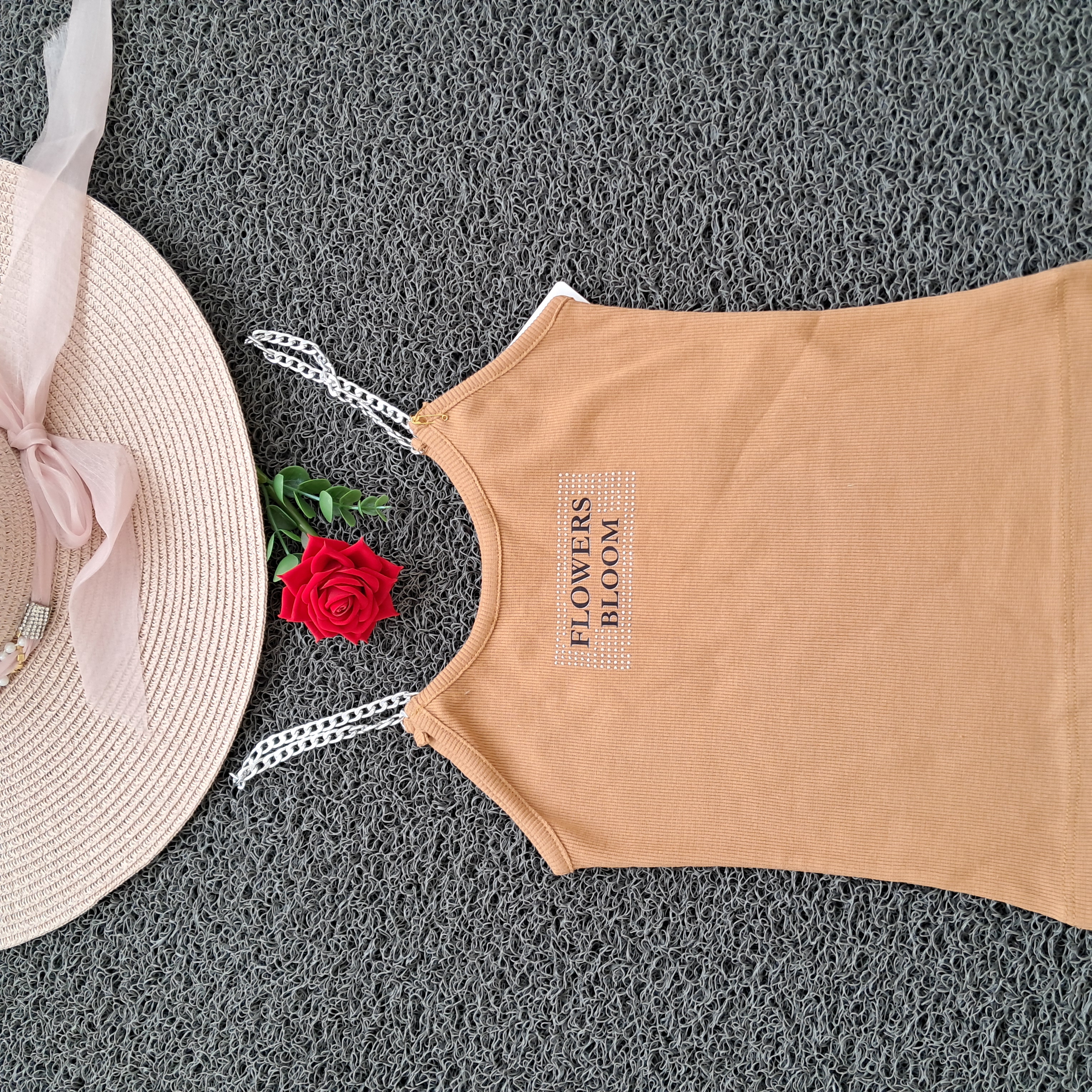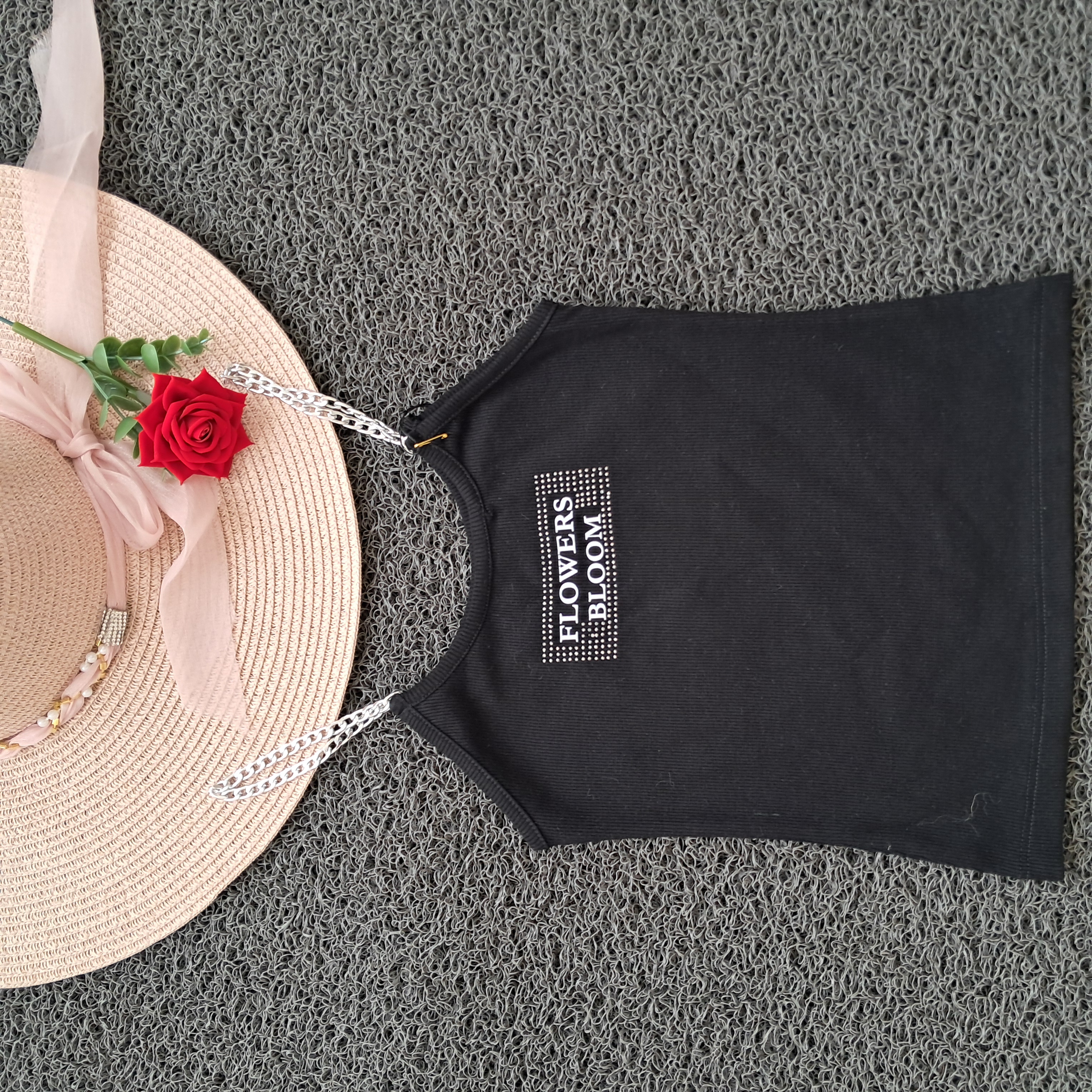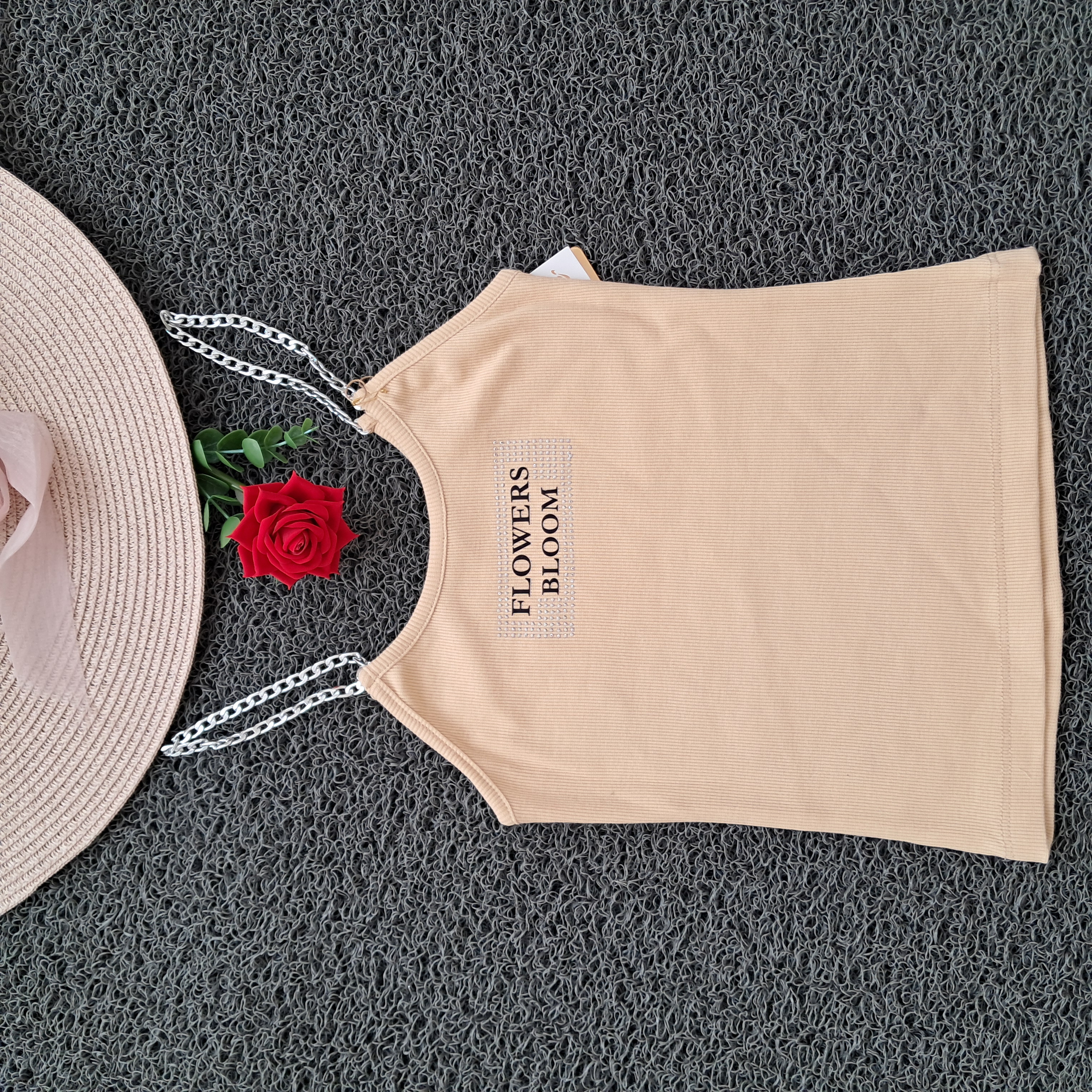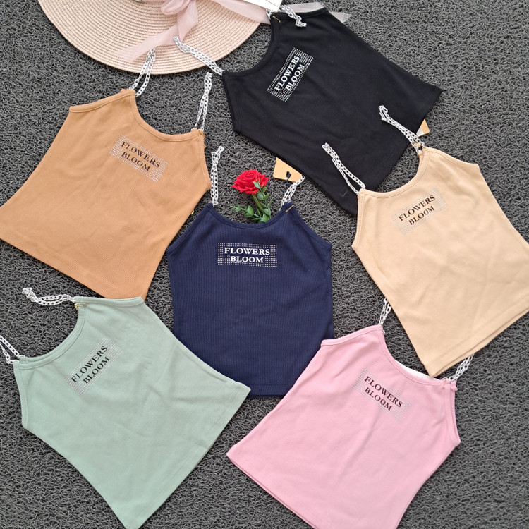 تاپ دخترانه بند زنجیری نگین کوب کبریتی