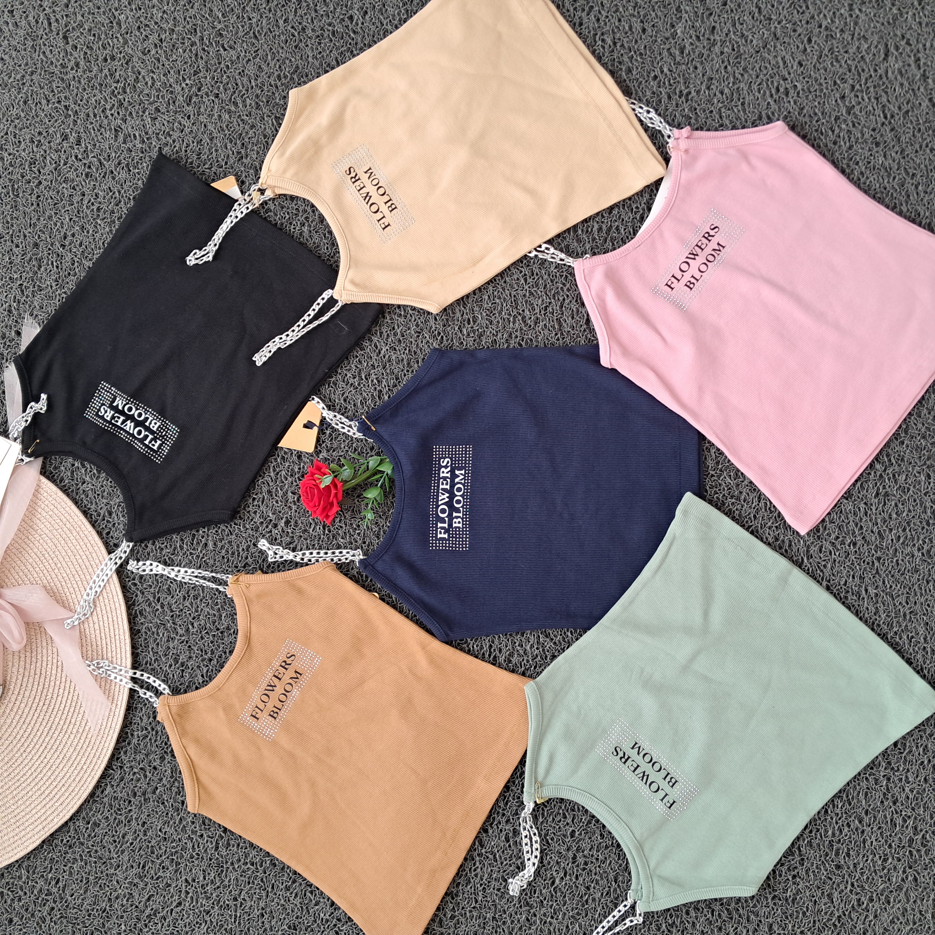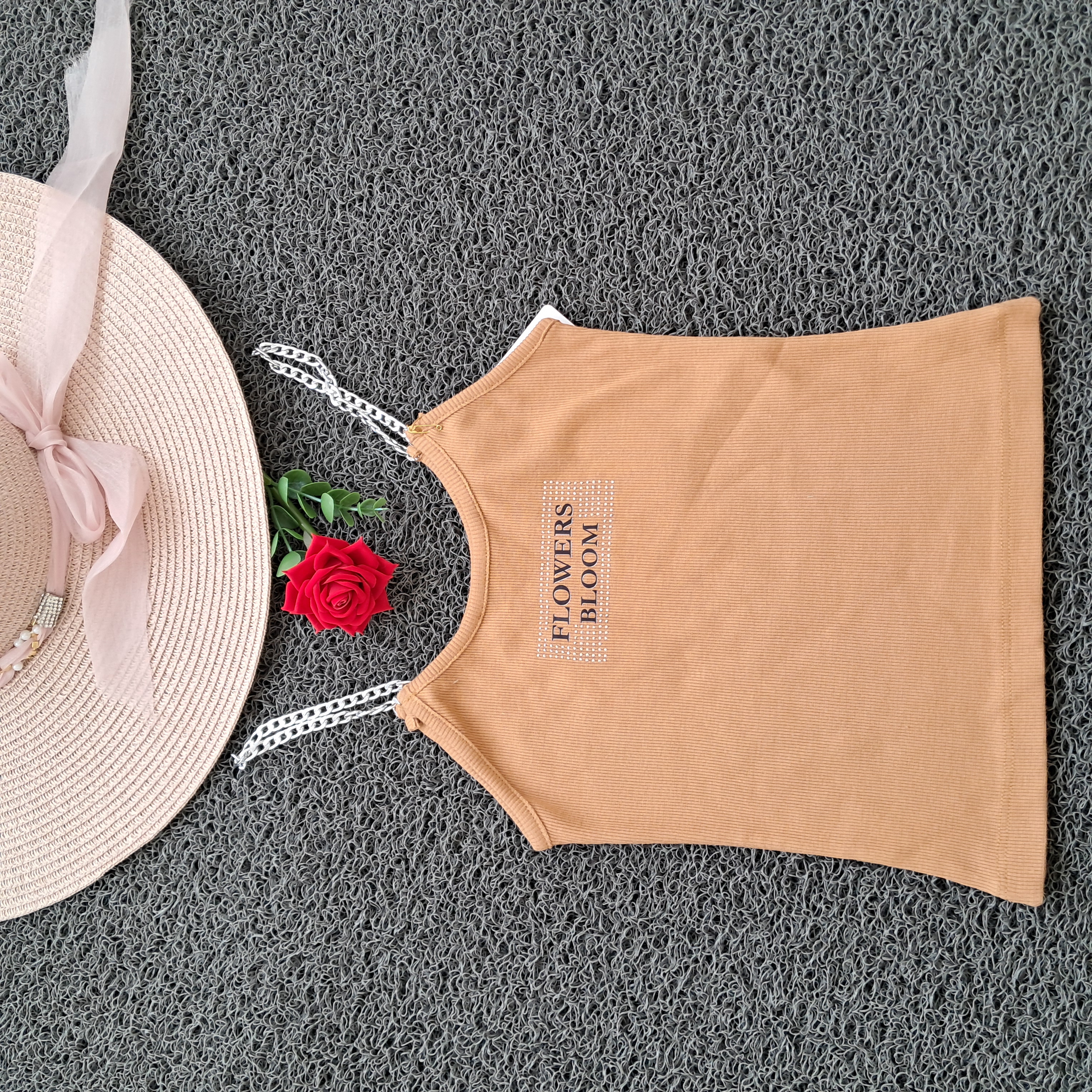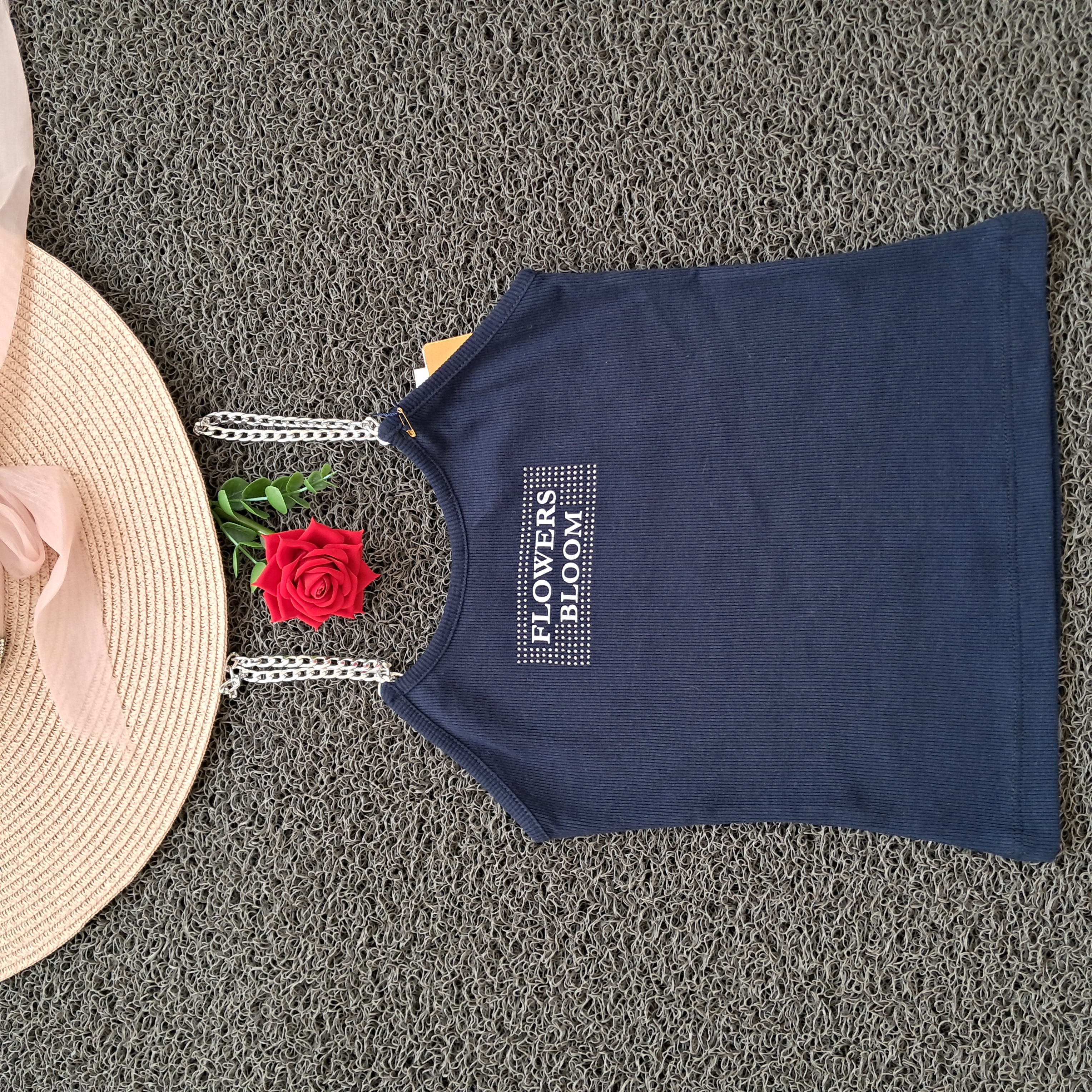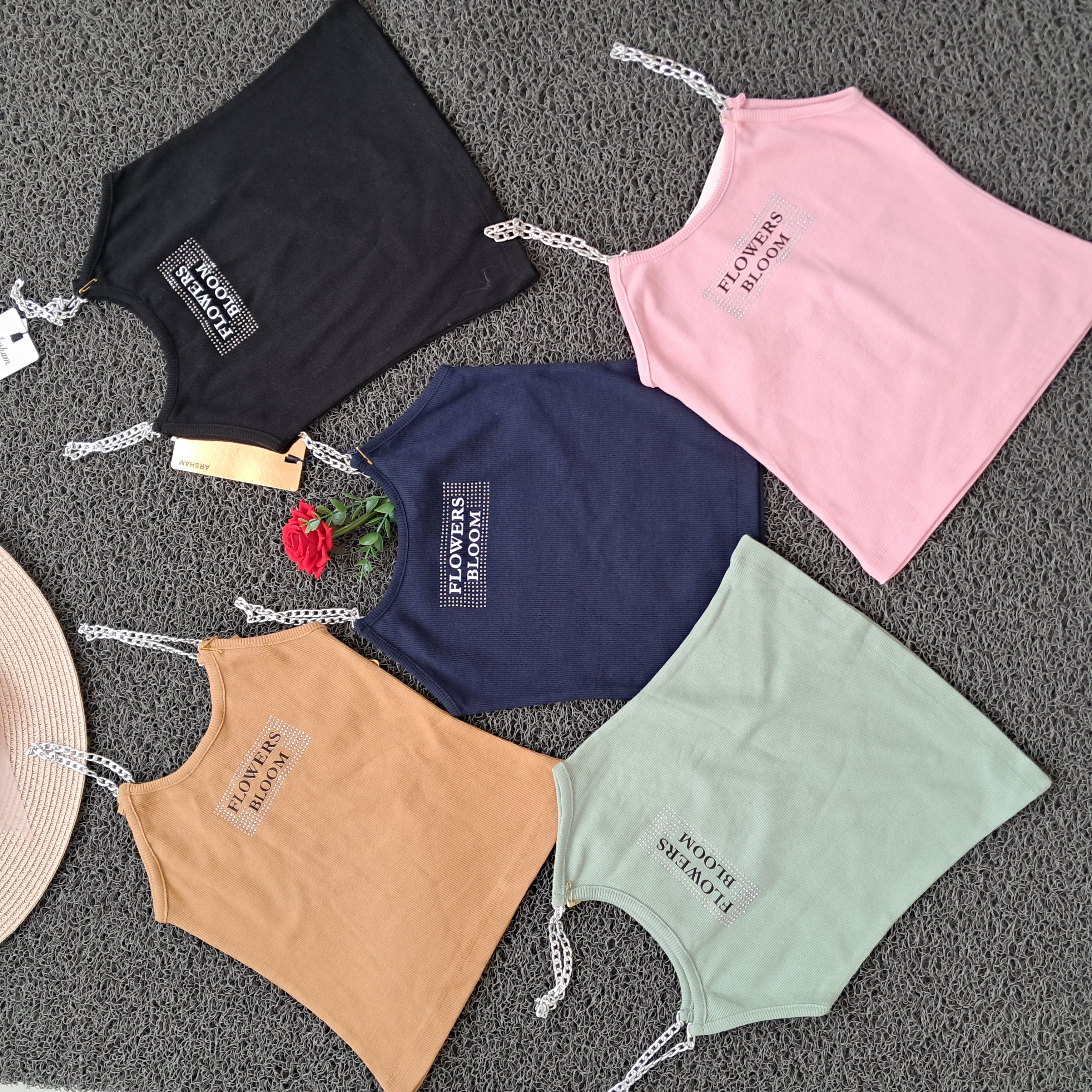 تاپ دخترانه بند زنجیری نگین کوب کبریتی
