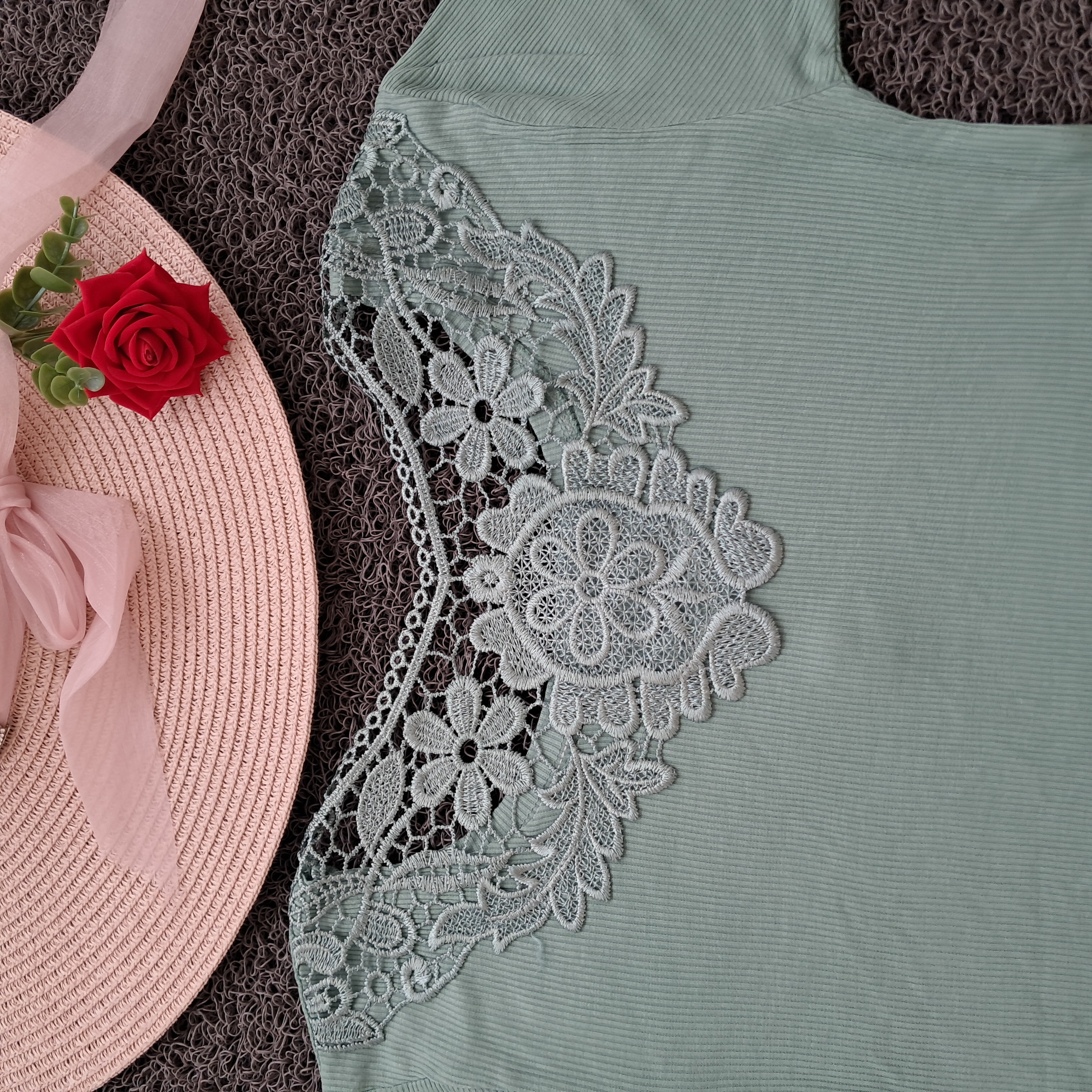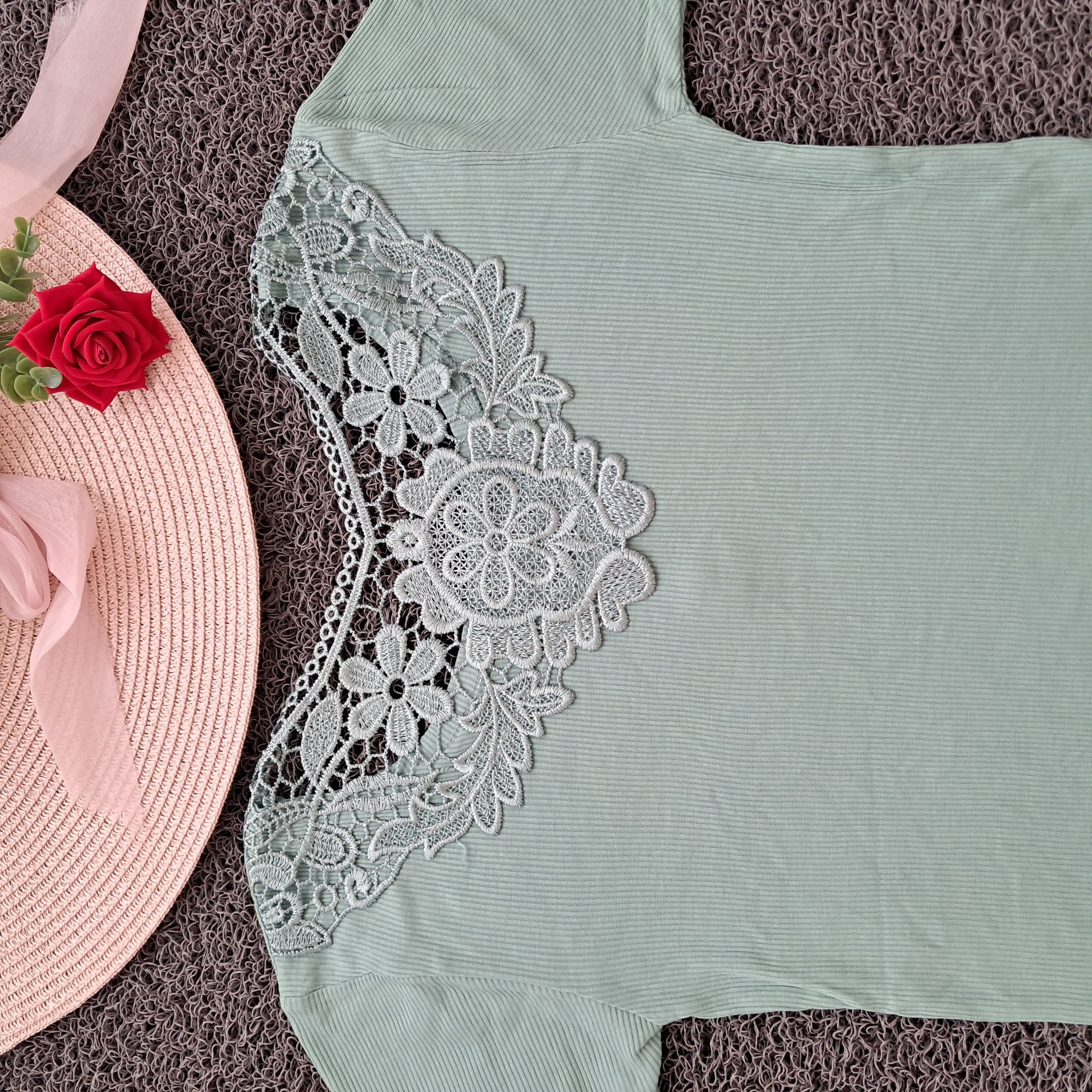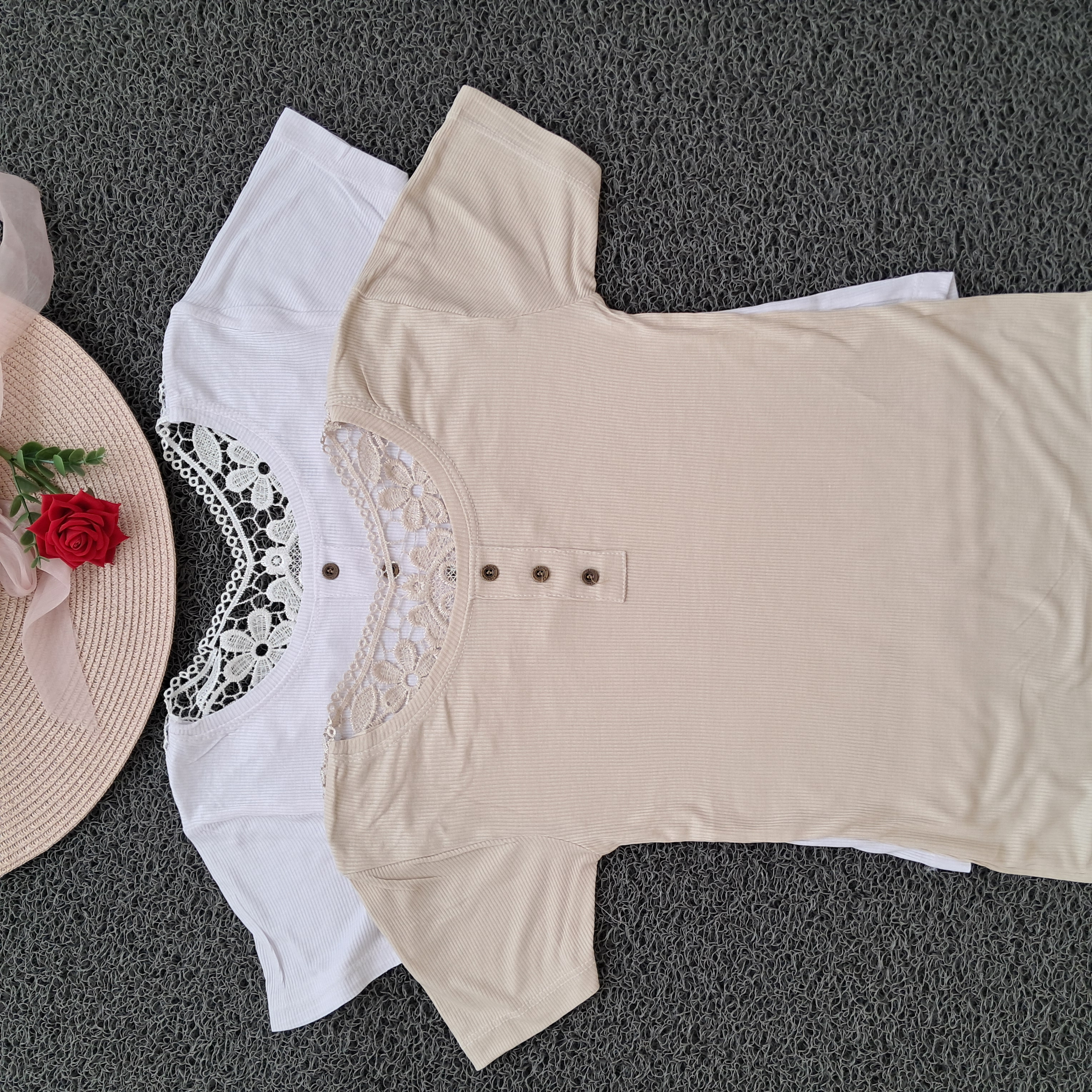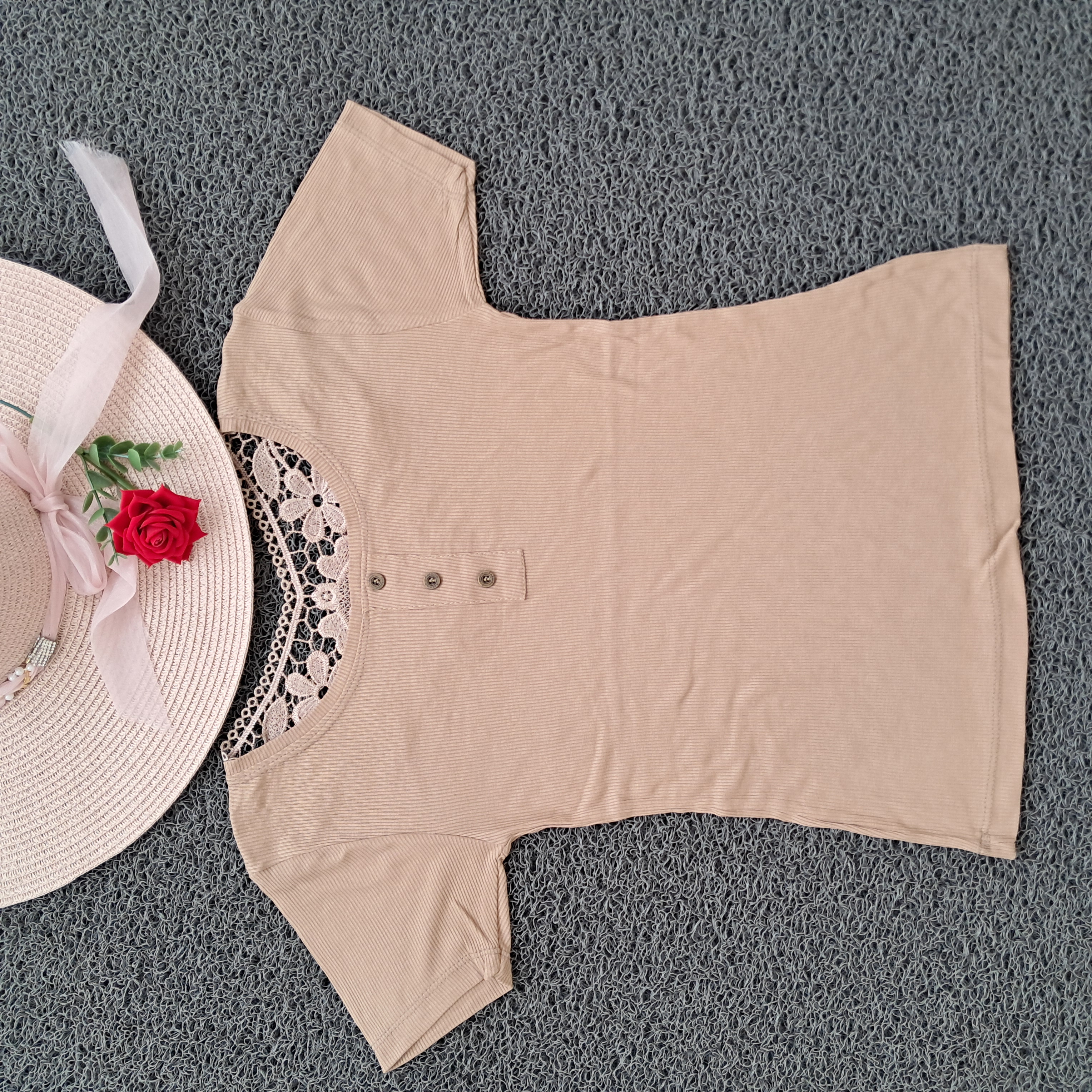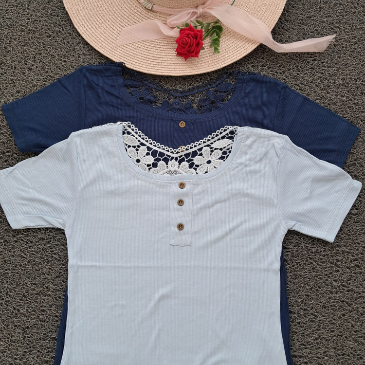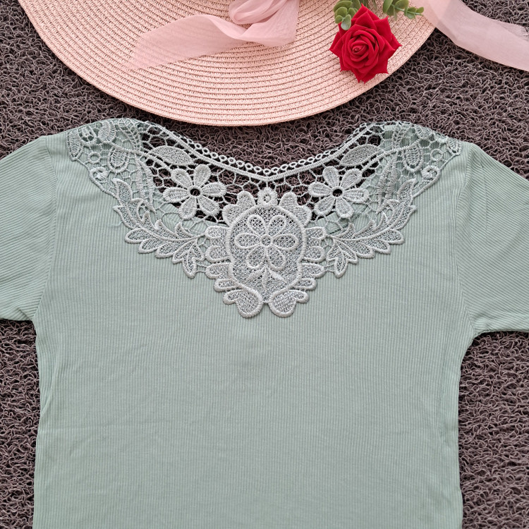 تیشرت زنانه پشت گیپور تابستانه فری سایز( ۳۶ الی ۴۶)