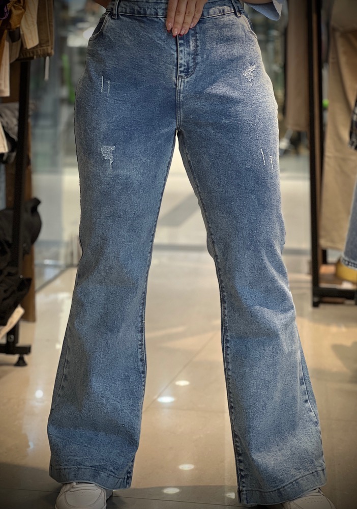 شلوار جین بوتکات [ دمپا ] زنانه رنگ ابی برفکی