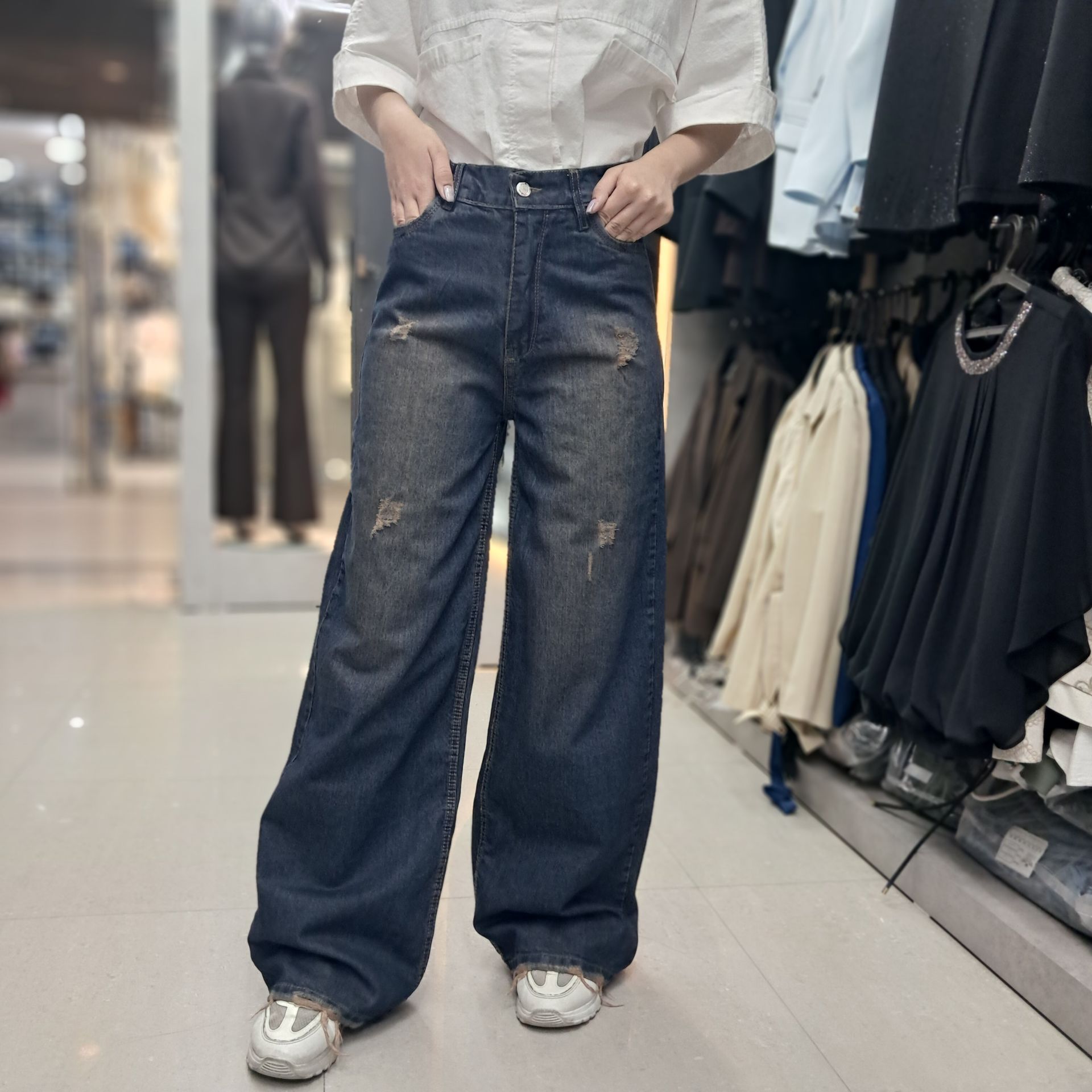 شلوار جین مدل فلر بگ زنانه سورمه ای کثیف شور