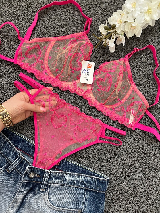 ست شورت و سوتین شیشنه ای بدن نما طرح قلب صورتی