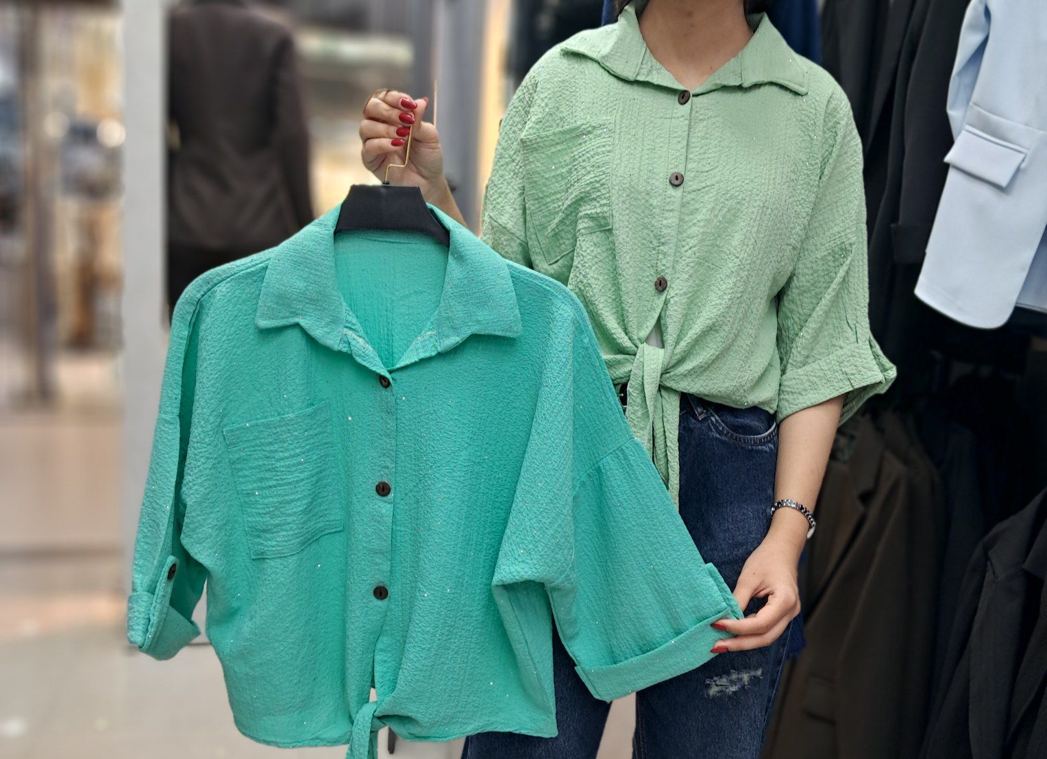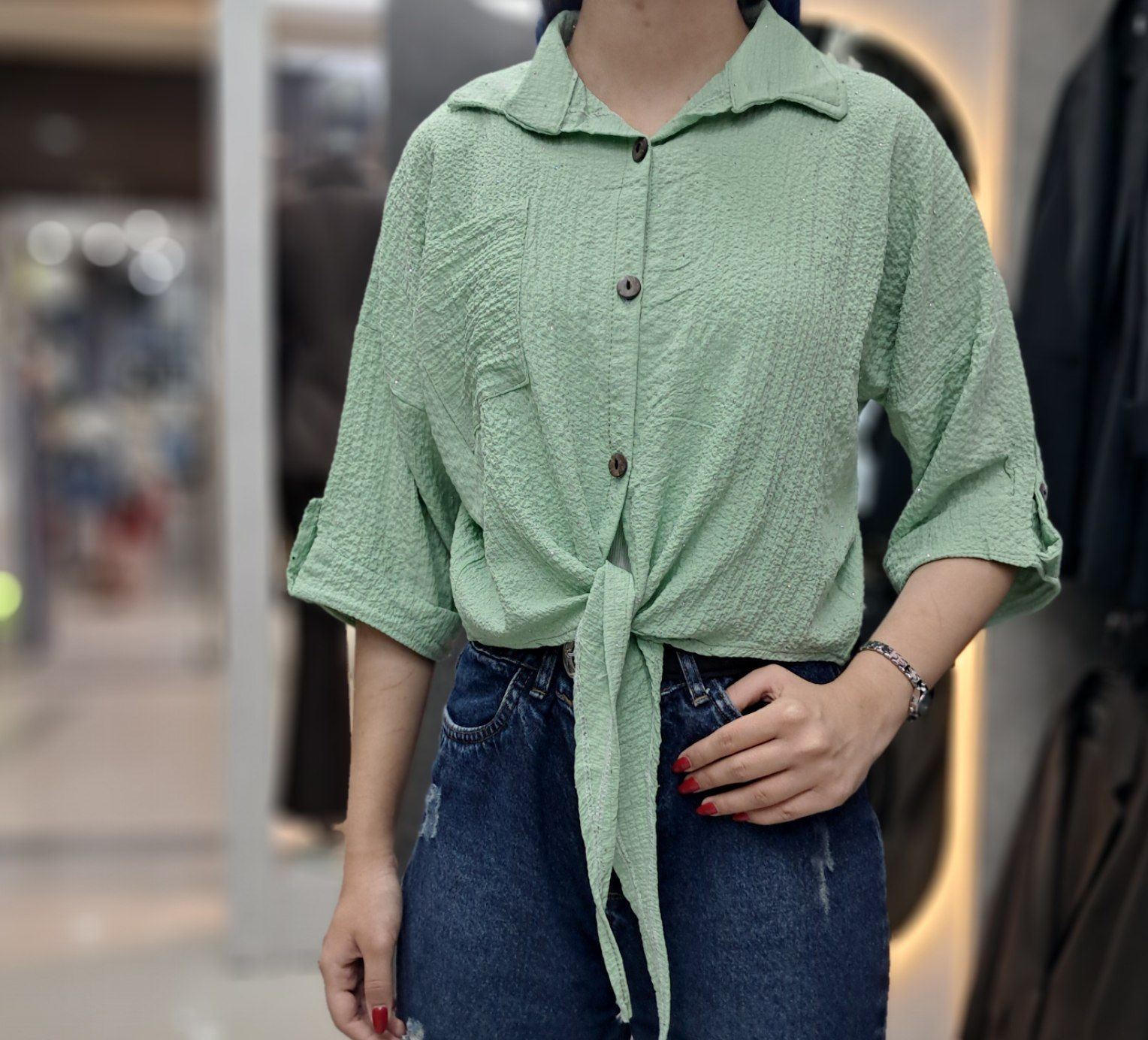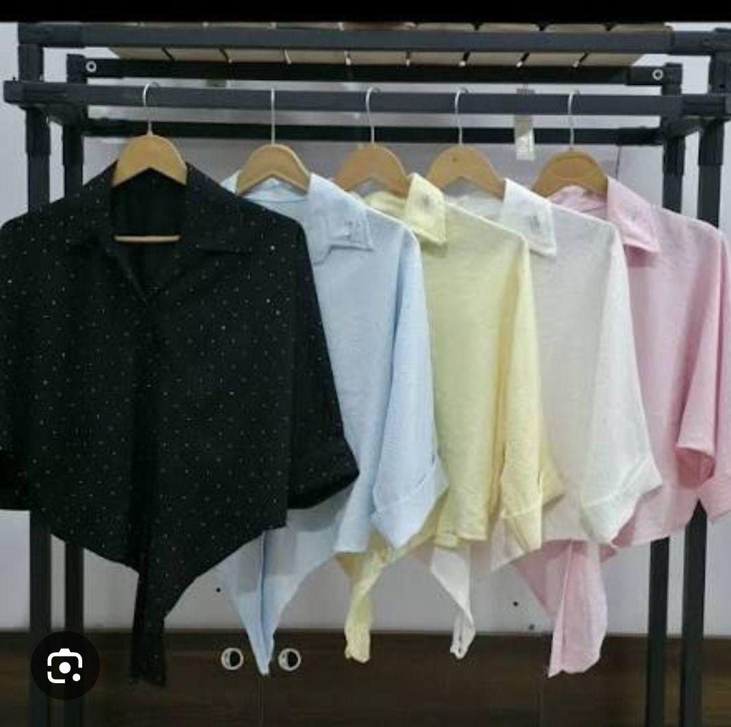 جنس پفکی . بسیار سبک و خنک قد شومیز 65 مدل گره ای نگین کوب ( نگین ها پرس شده اند و به هیچ عنوان جدا نمیشوذ) فری سایز مناسب سایز های 36 الی 44 رنگ بندی پاستیلی و جذاب