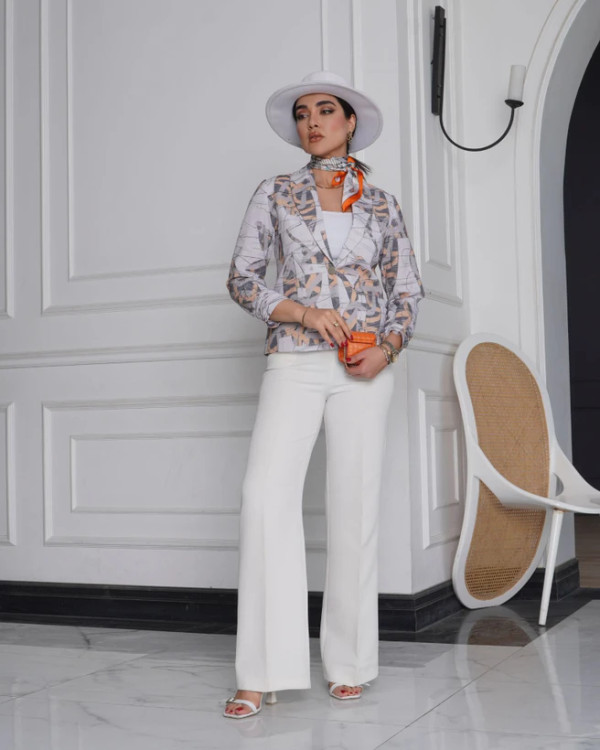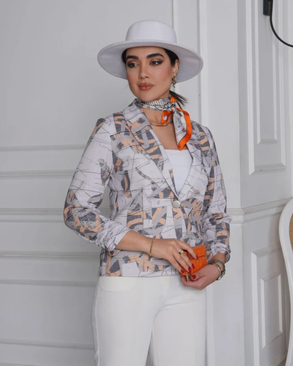 کت کراپ زنانه جنس ژاکارد طرح دار بهاری