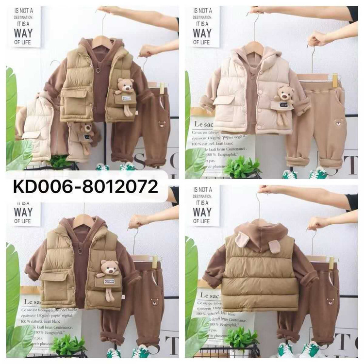 ست سه تیکه هودی و شلوار و پافر تو کرک ضخیم بچگانه