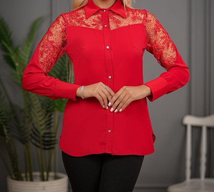 شومیز مجلسی زنانه با یقه حریر طرحدار