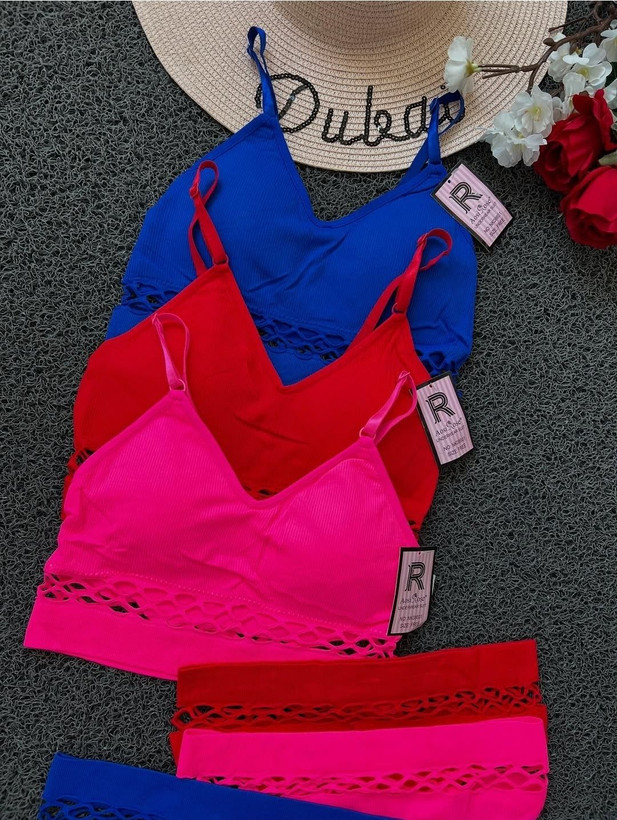 ست نیم تنه و شورت بکلس زنبوری