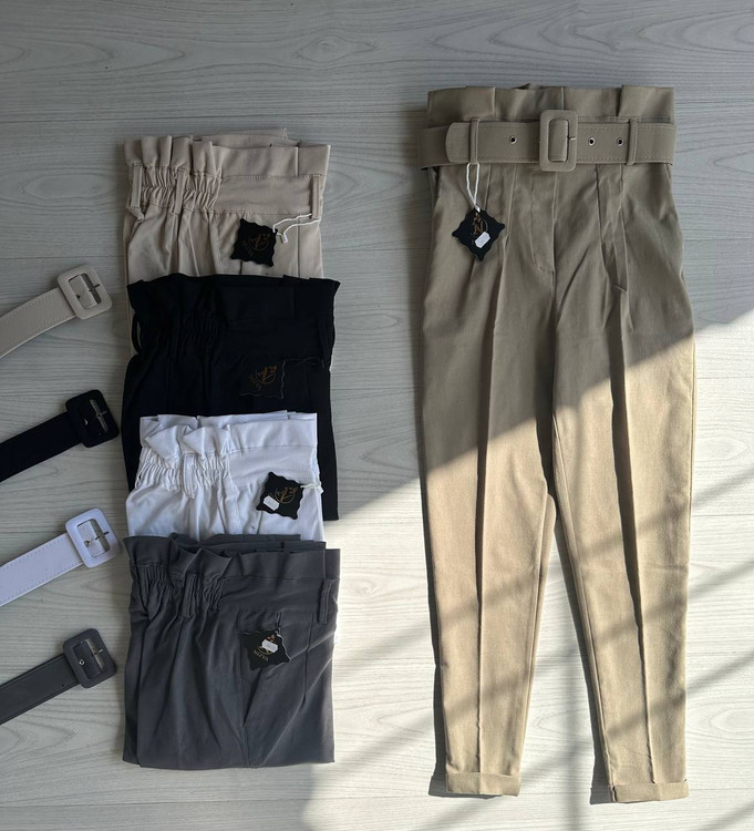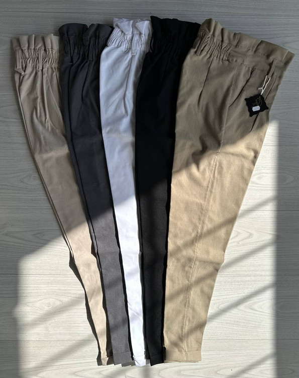 شلوار کتان کش پاکتی کمر چیندار جلوپیله