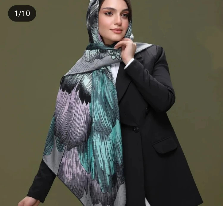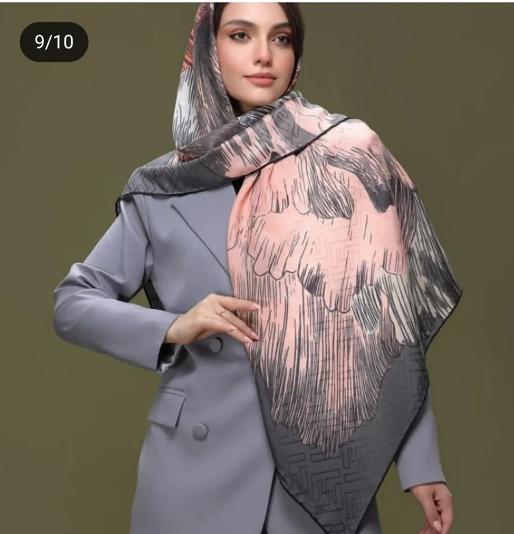 🌹 روسری حریر قواره ۱۴۰ دور دست دوز
