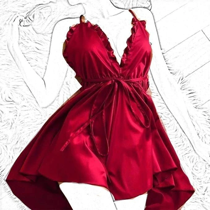 لباس خواب زنانه مقمیس مدل ساتن پشت ضربدری