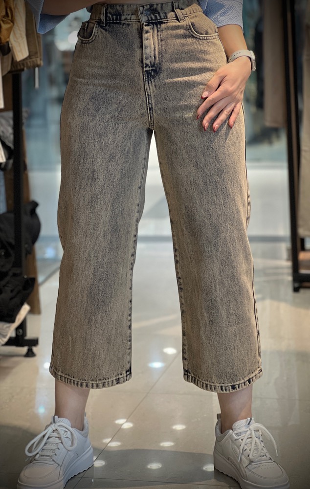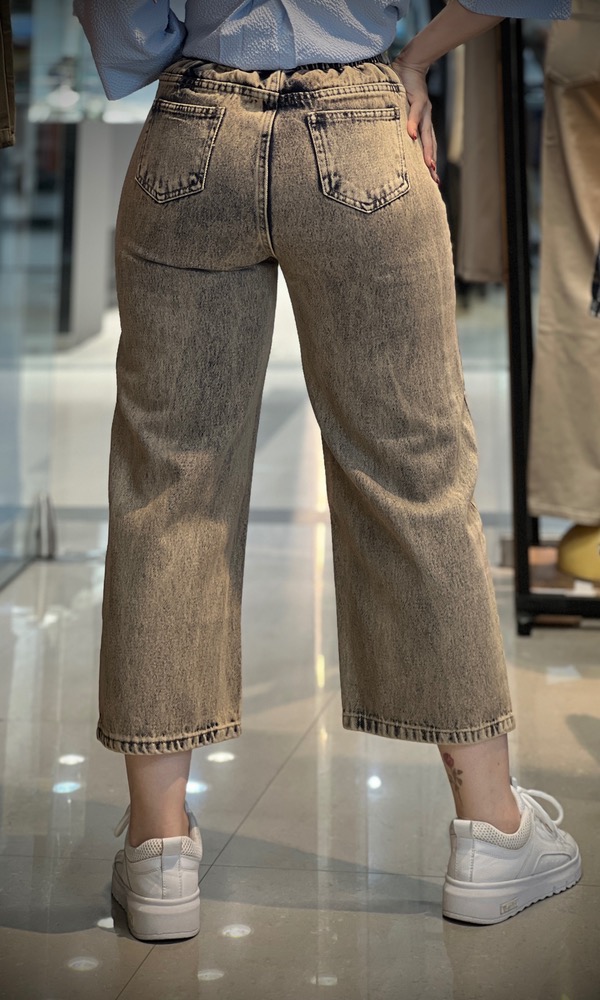 شلوار جین زنانه مدل واید لگ سنگشور کرم