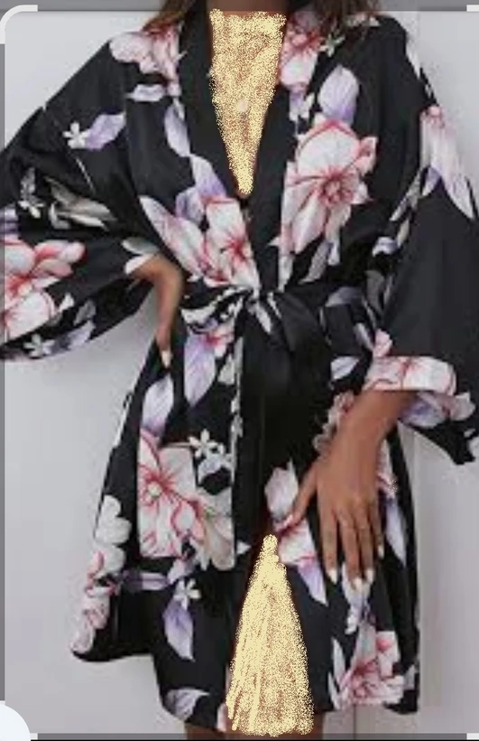 لباس خواب زنانه مشکی طرح گلدار