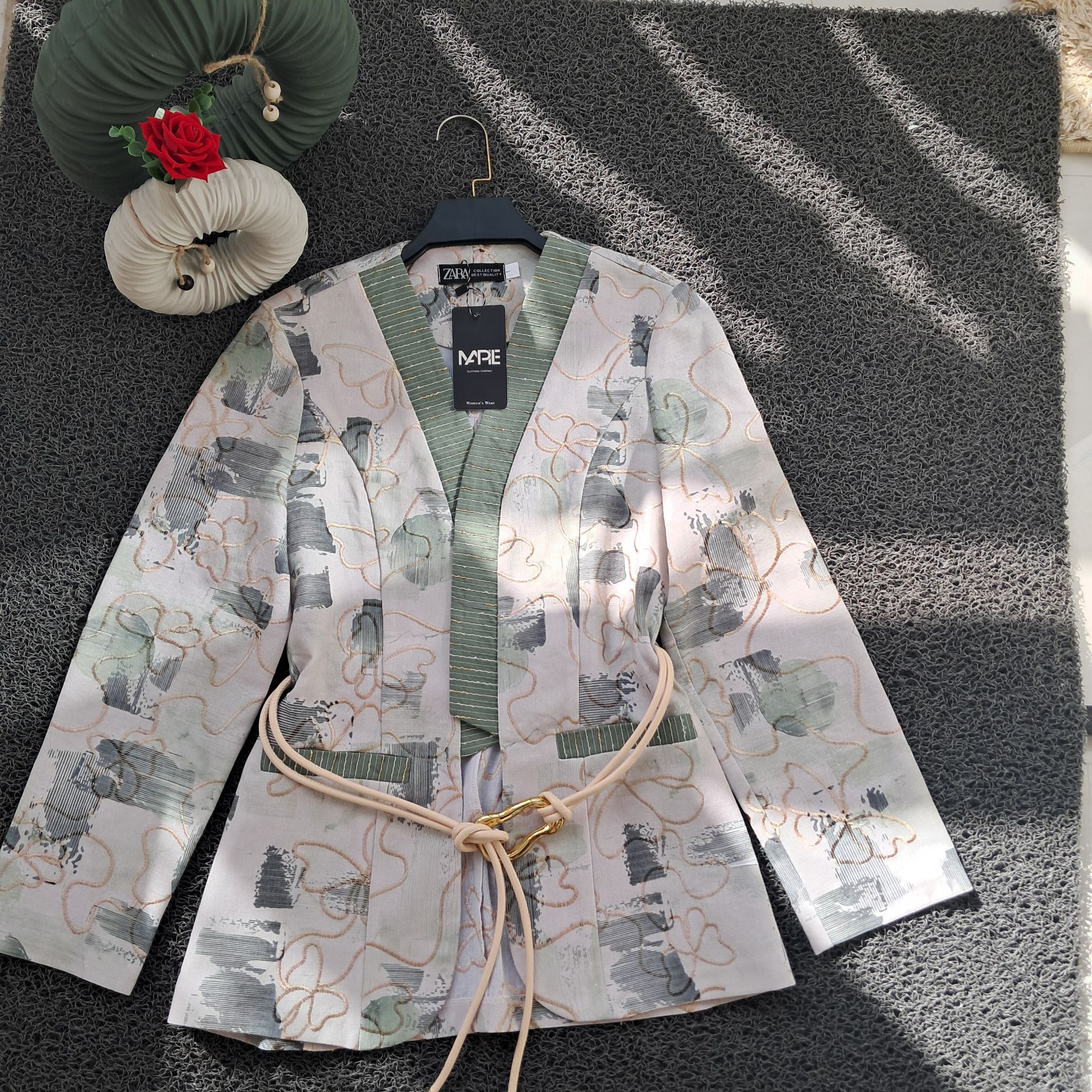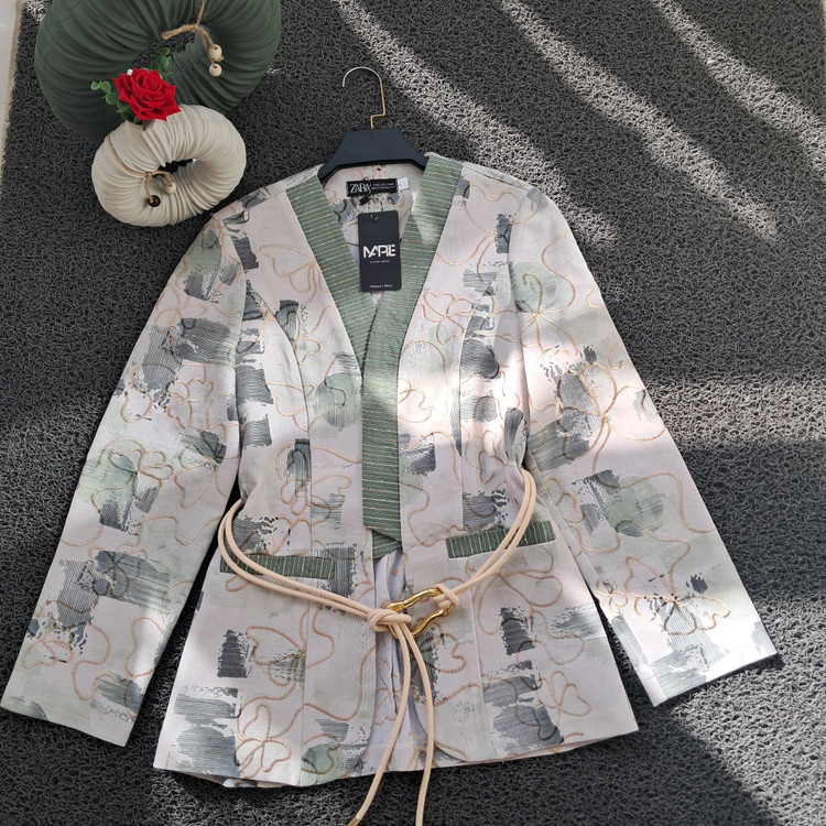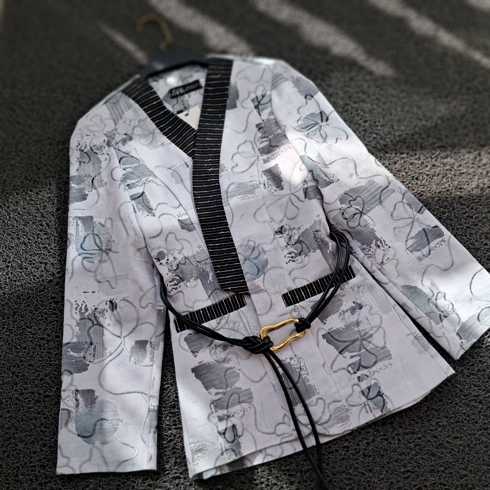 مانتو کتی ژاکارد مجلسی همراه کمربند