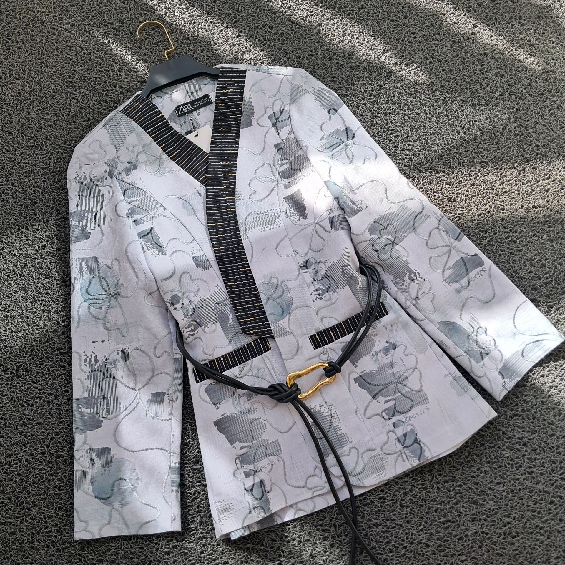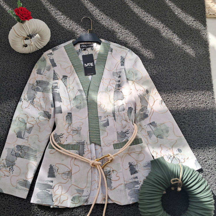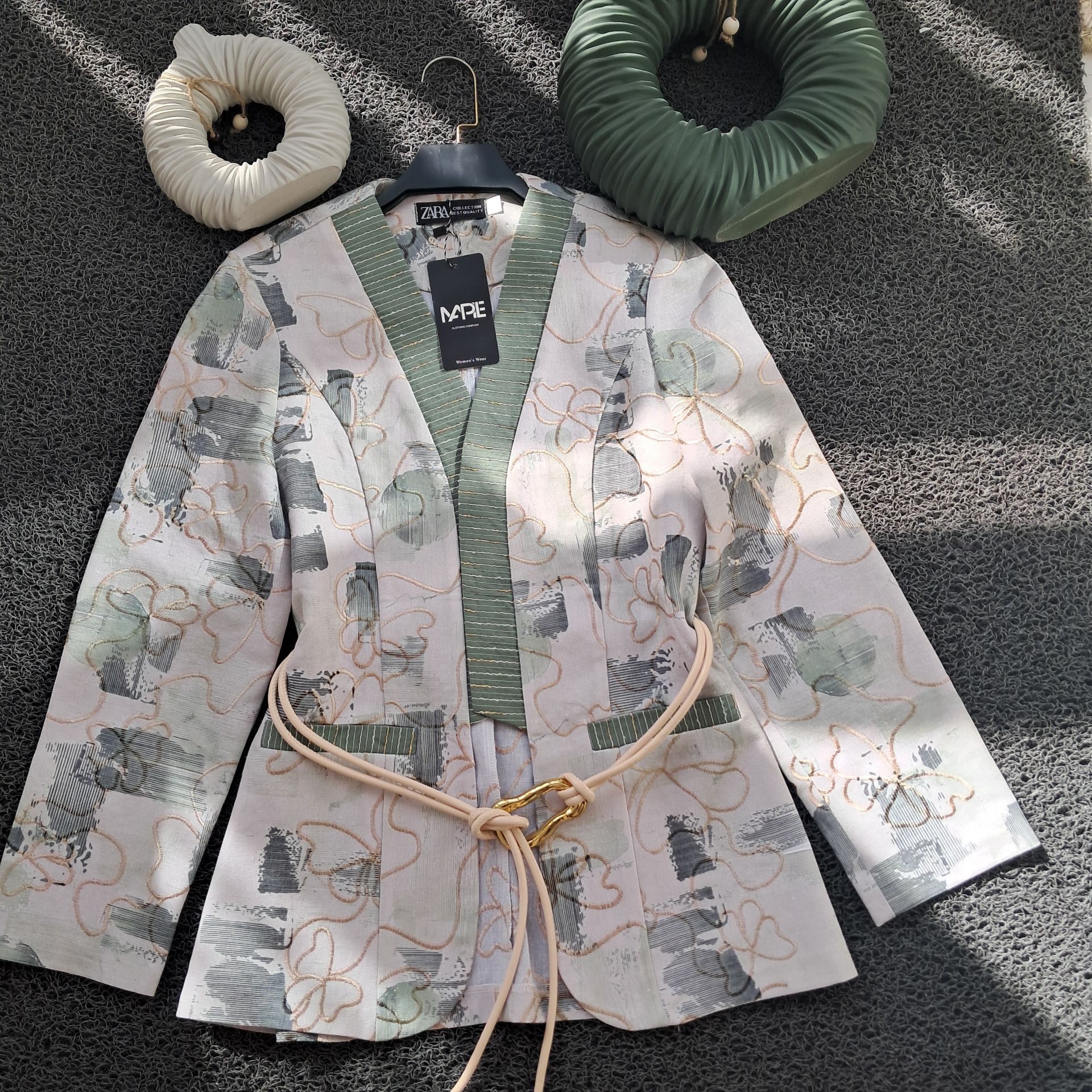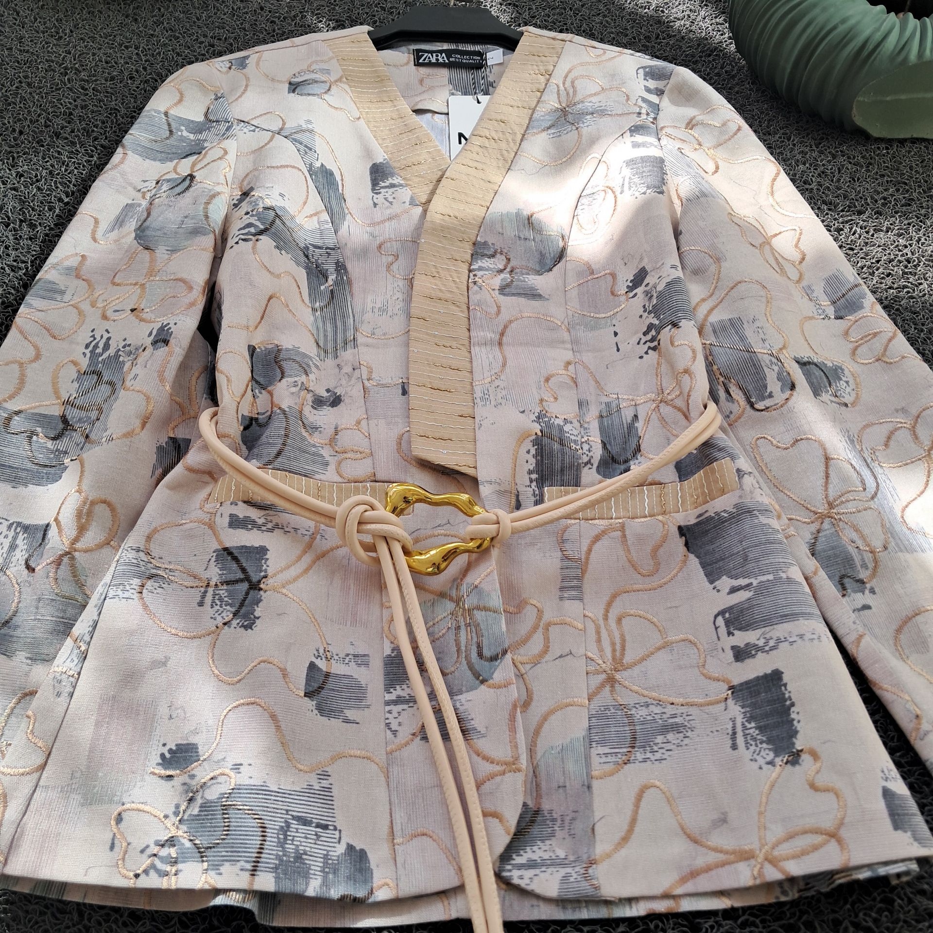 مانتو کتی ژاکارد مجلسی همراه کمربند