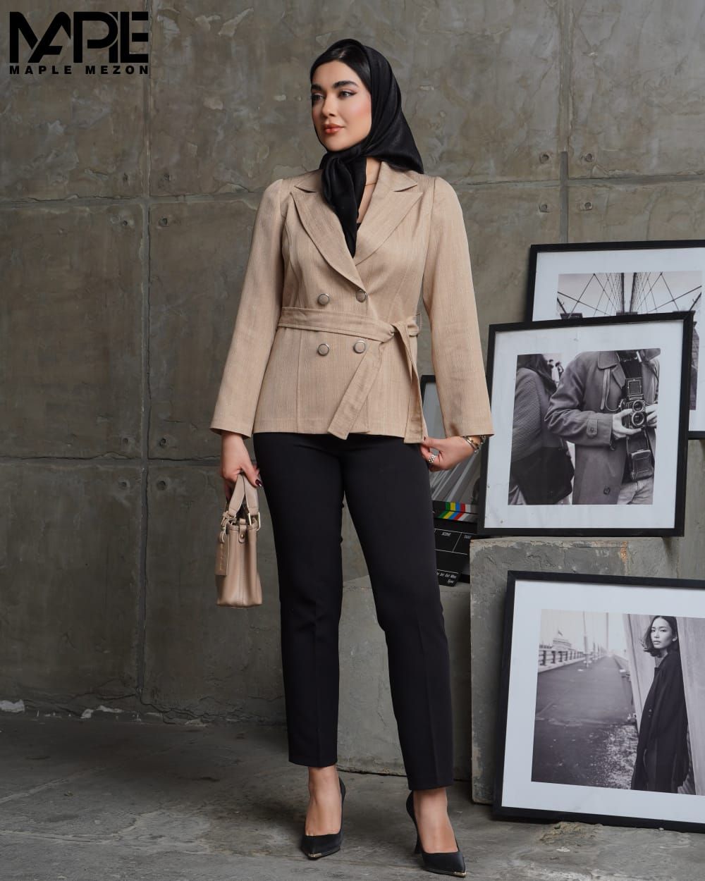 مدل کت: یقه انگلیسی 4 دکمه کمربند دار
