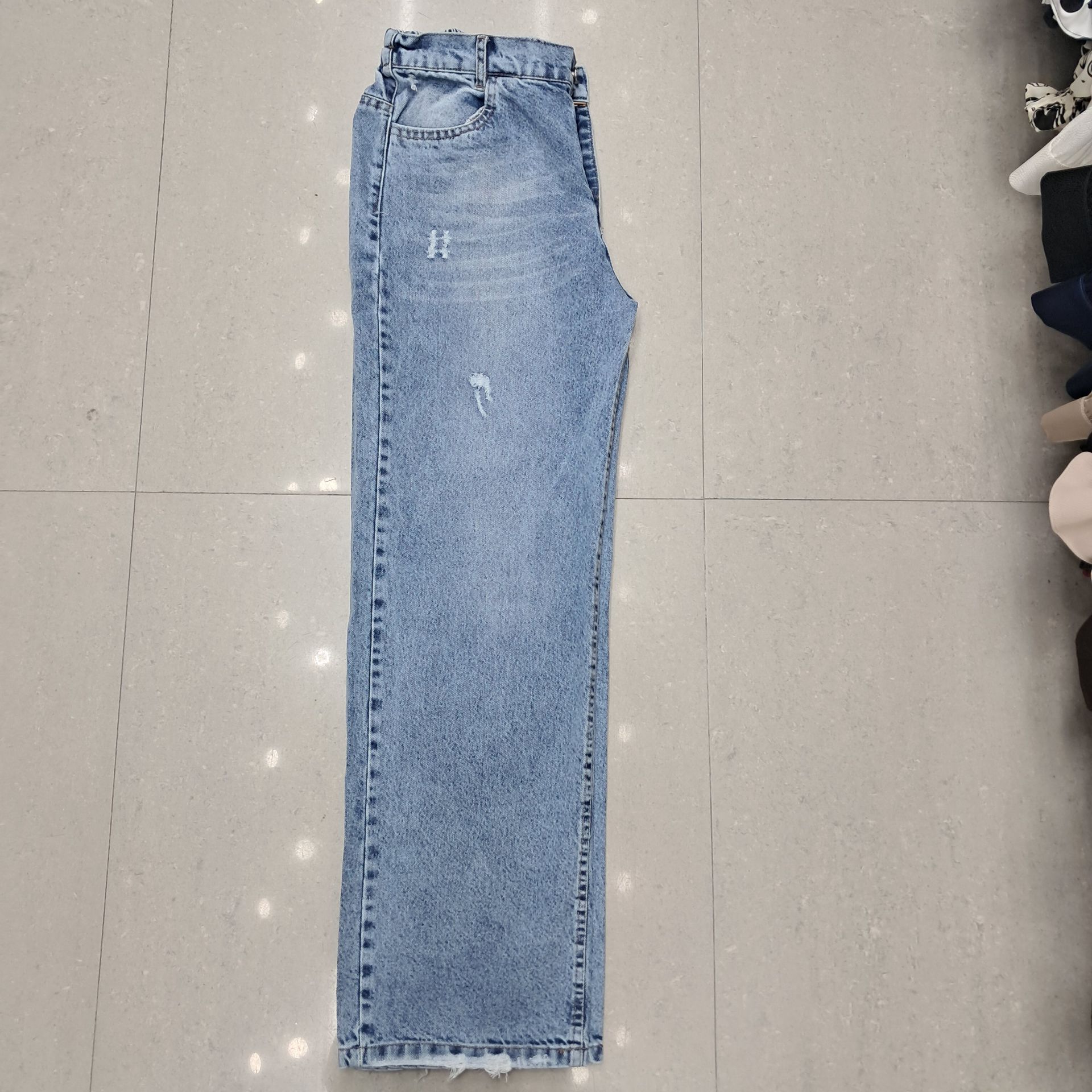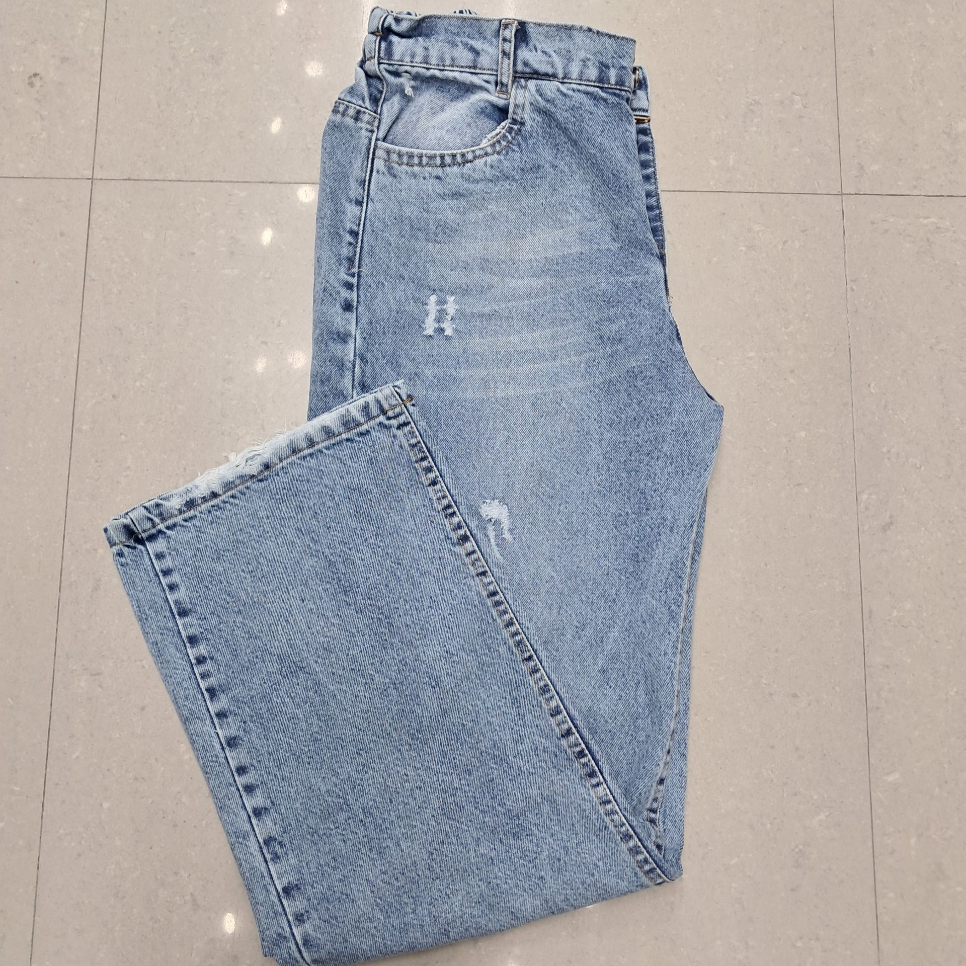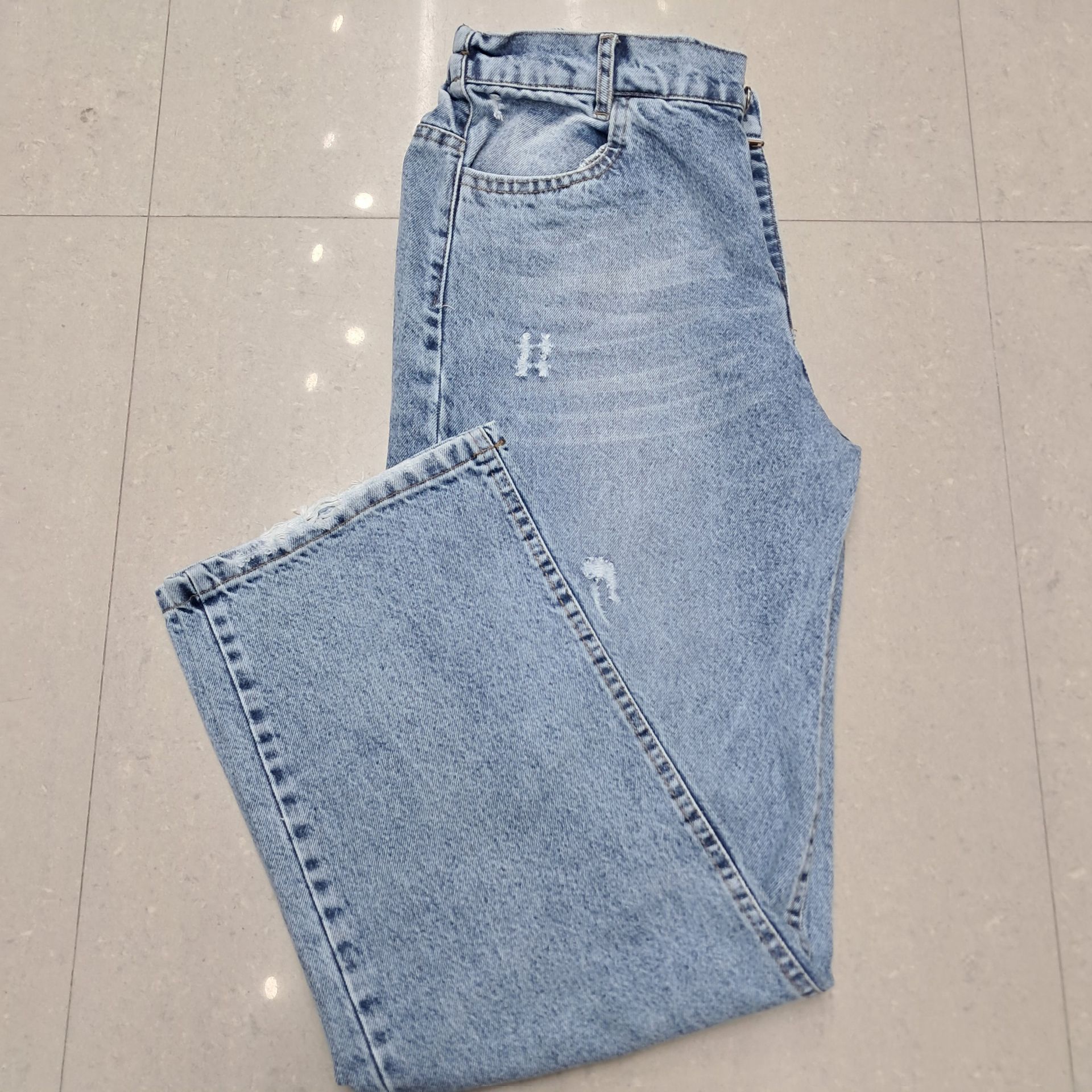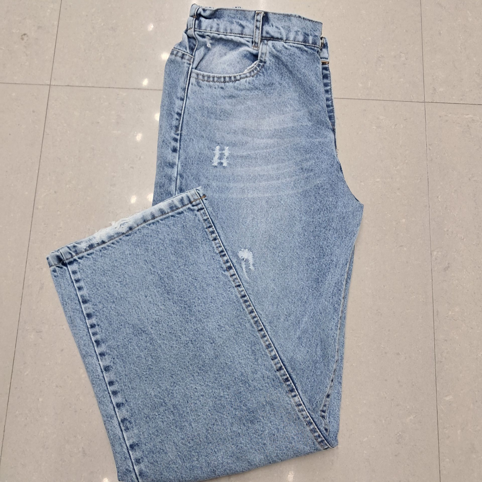 شلوار جین زنانه سایز بزرگ مدل نیم بگ رنگ آبی سایه دار