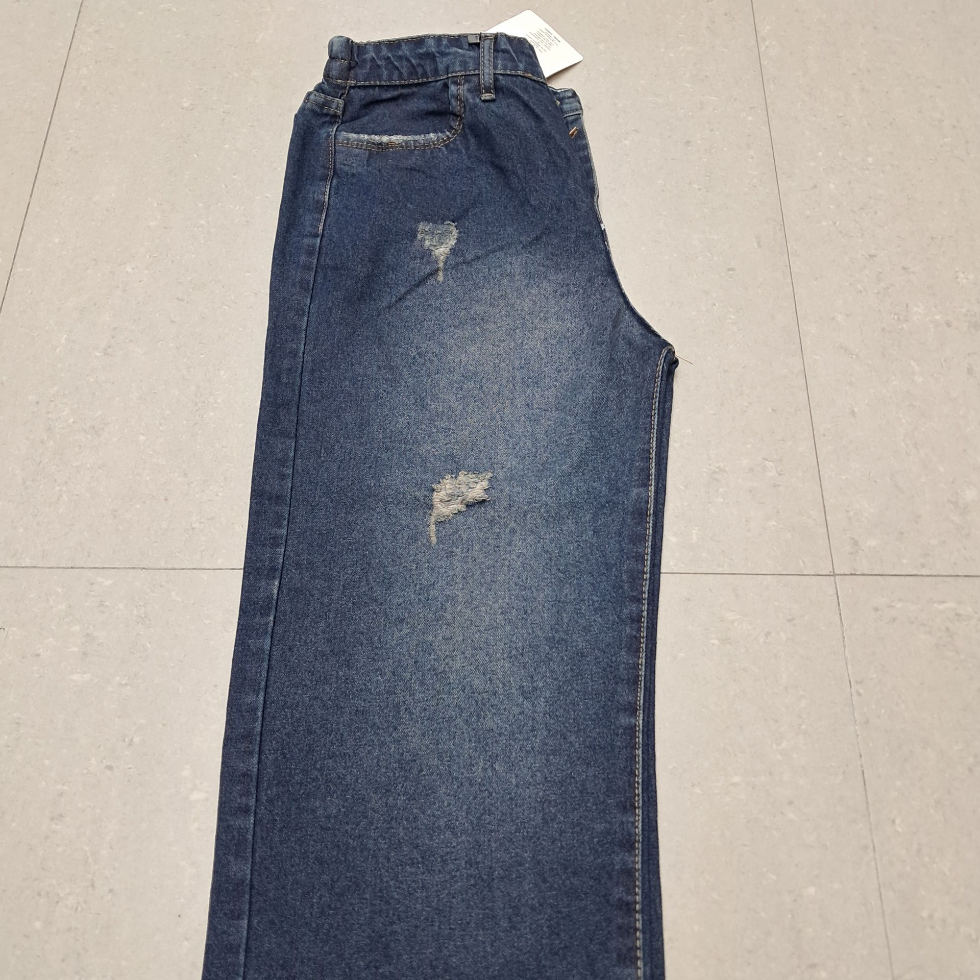 شلوار جین زنانه مدل نیم بگ سورمه ای سایه دار